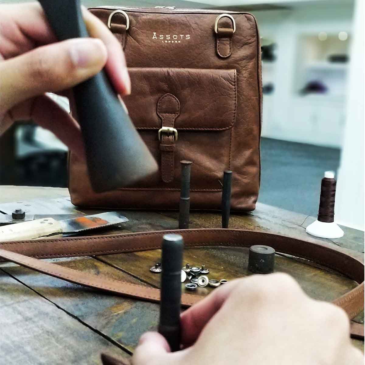 Every Assots bag begins with ethically sourced, full-grain leather — prized for its natural feel, durability, and the beautiful patina it develops with time. No synthetics, no shortcuts - just honest craftsmanship you can see and feel.