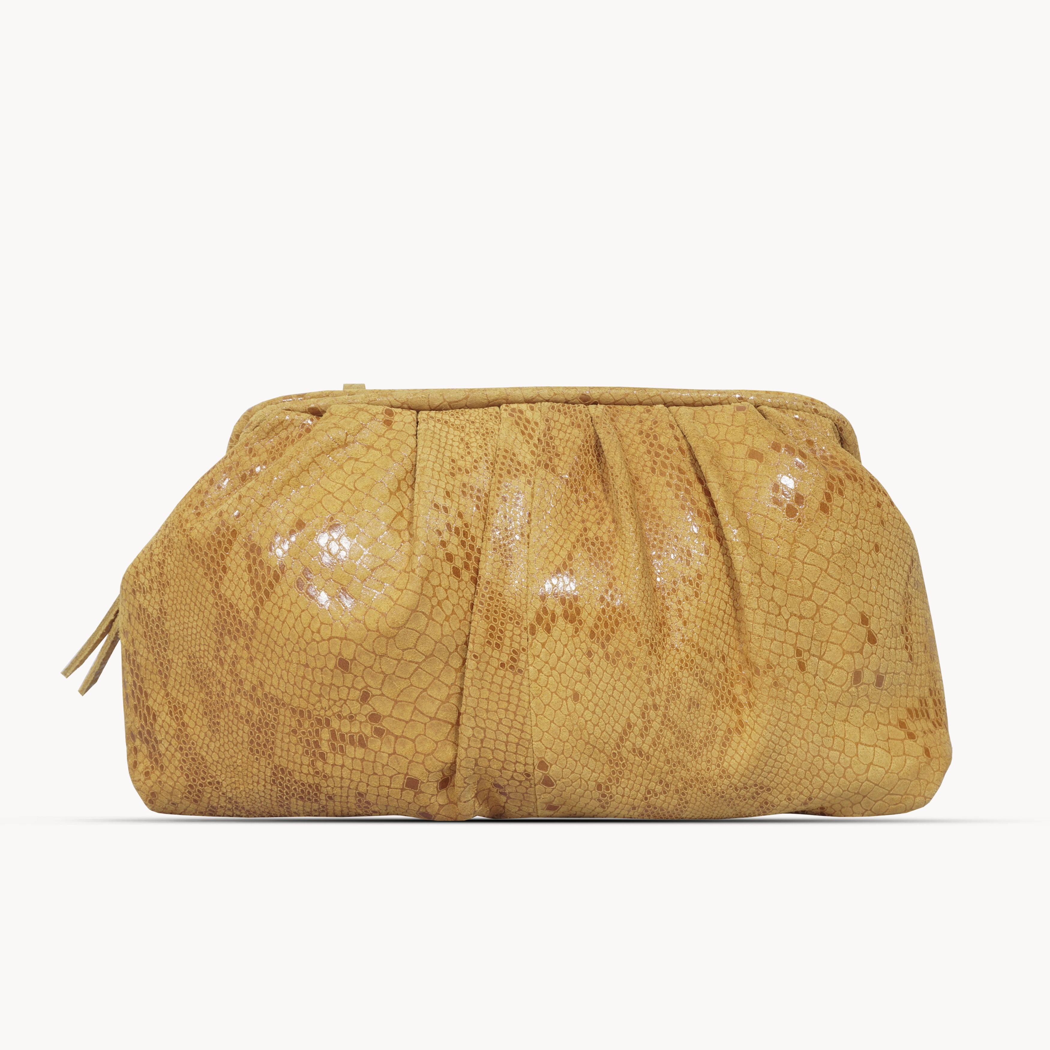'Harper' Mustard Python Snake Print Real Leather Oversized Clutch Bag