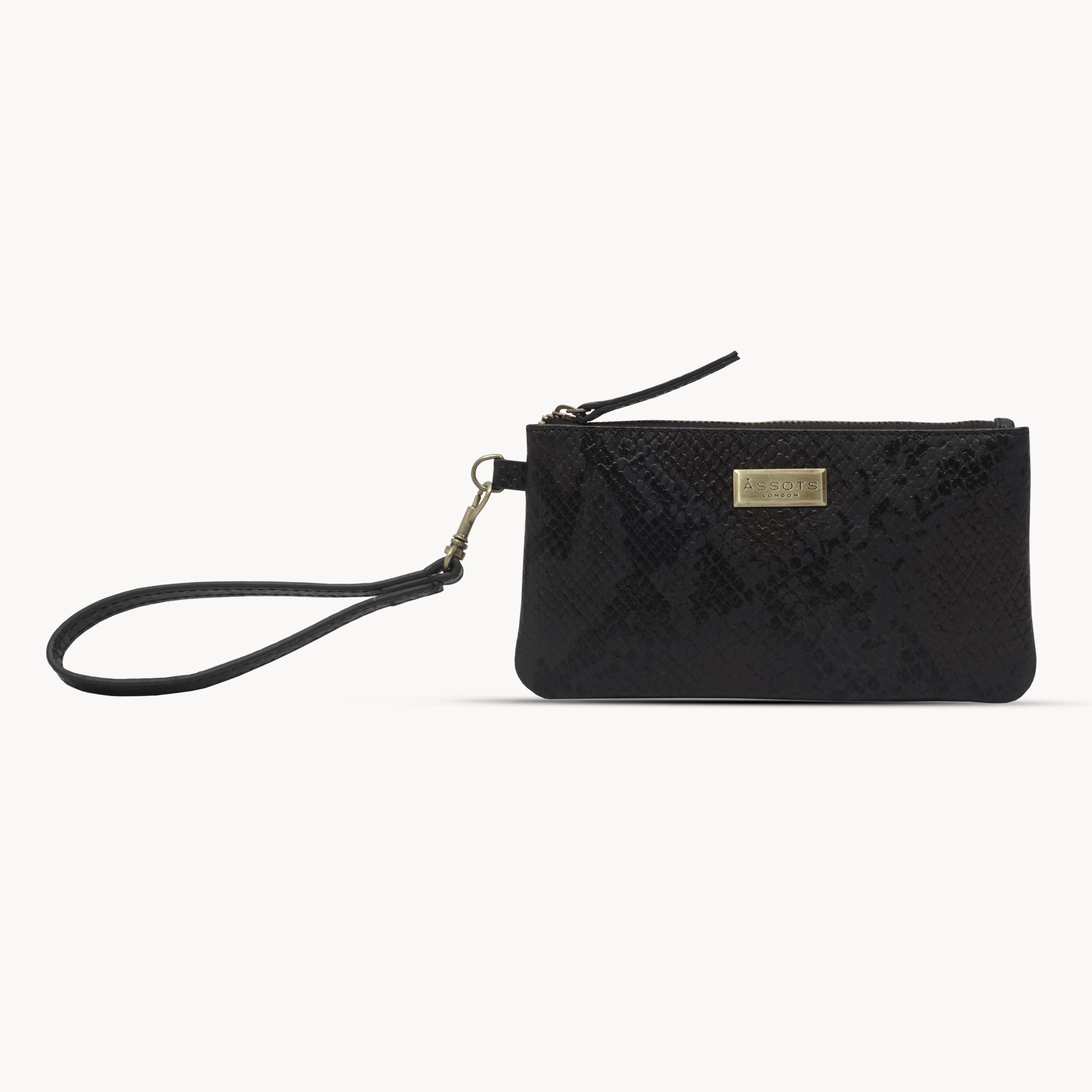 'KAREN' Black Snake Print Real Leather Wristlet Clutch Bag