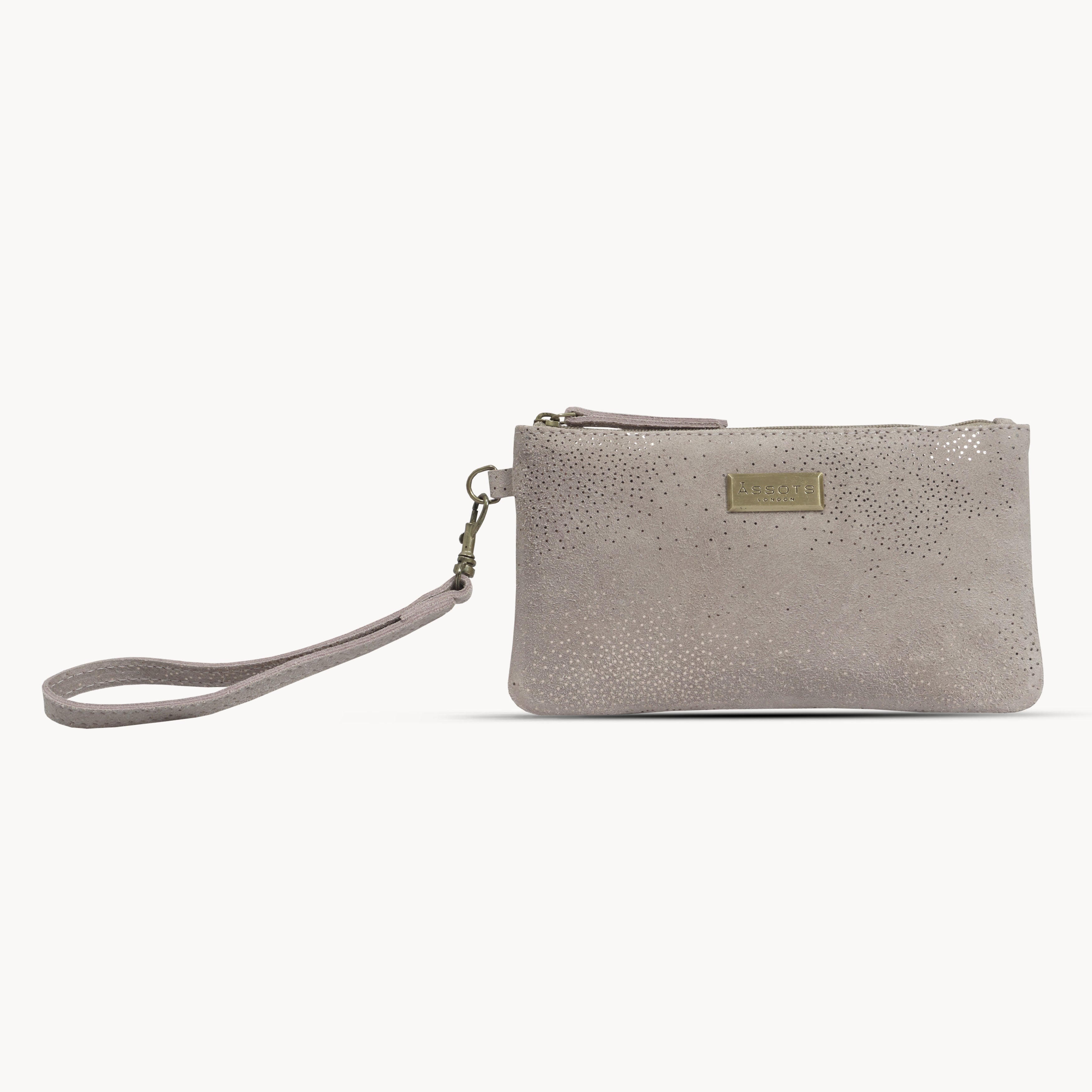 'KAREN' Grey Suede Leather with Silver Embellishment Wristlet Clutch Bag