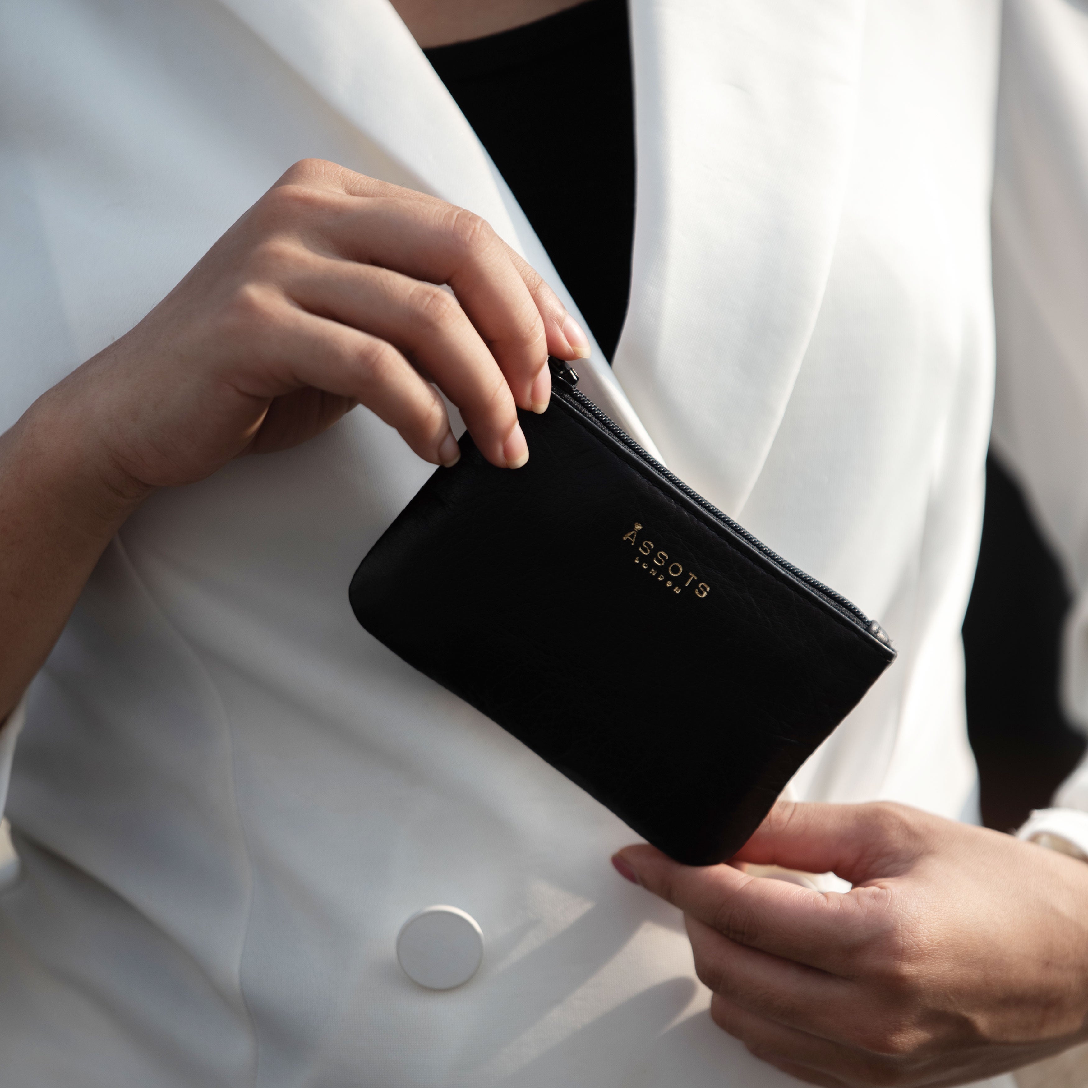 'Poppy' Black Full Grain Leather Zip Top Coin Purse