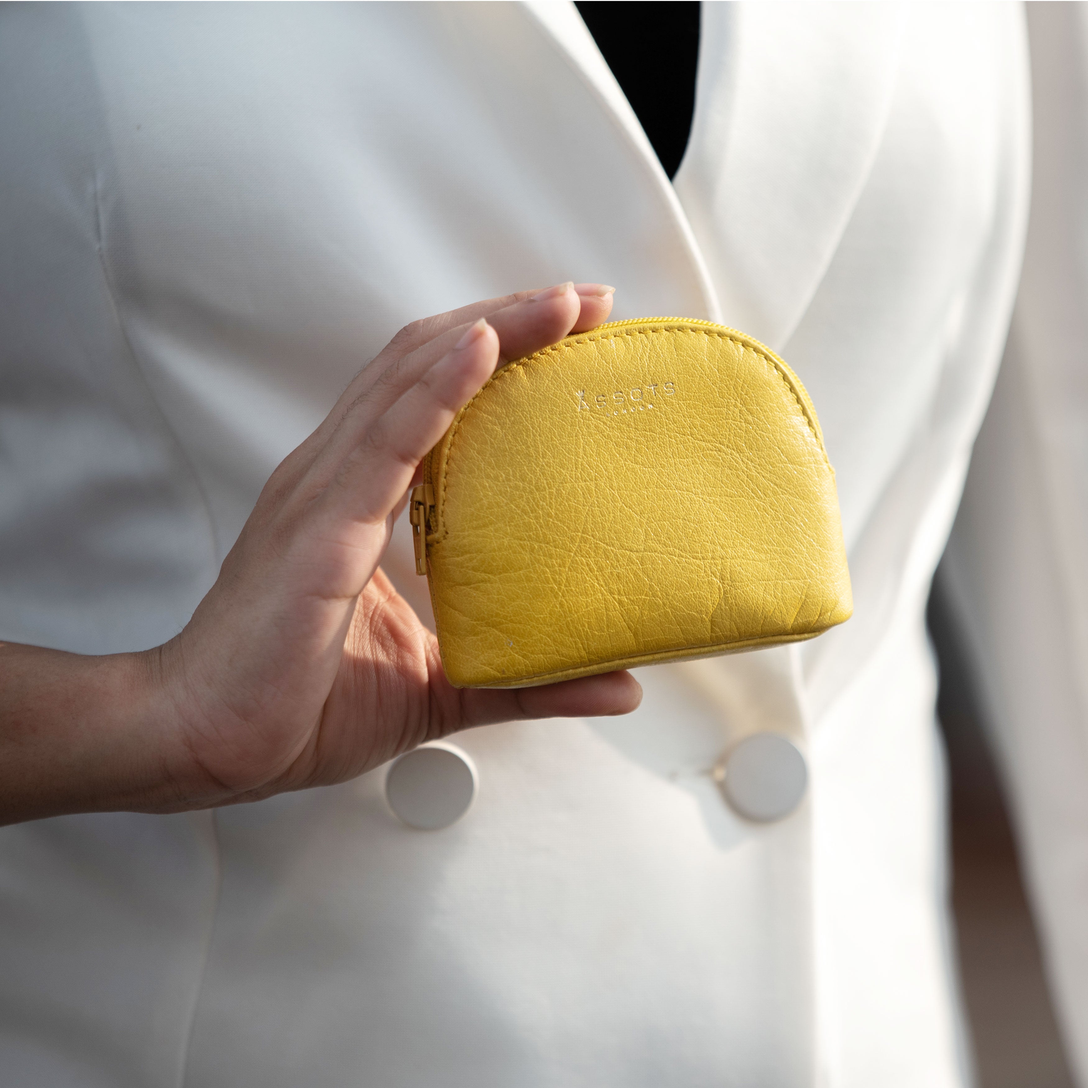 'Diana' Yellow Full Grain Leather Zip Top Coin Purse