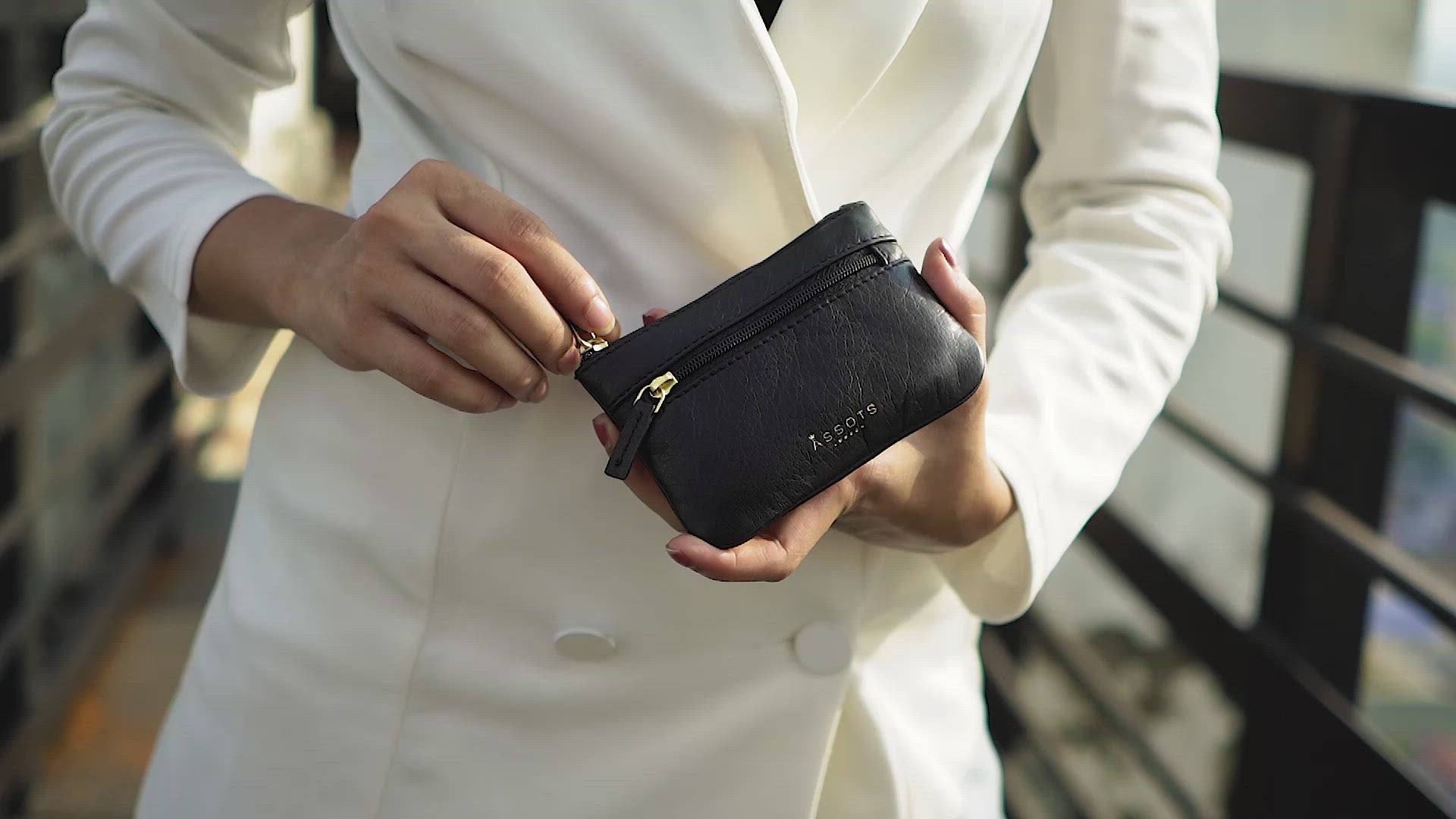 'Diana' Black Full Grain Leather Zip Top Coin Purse