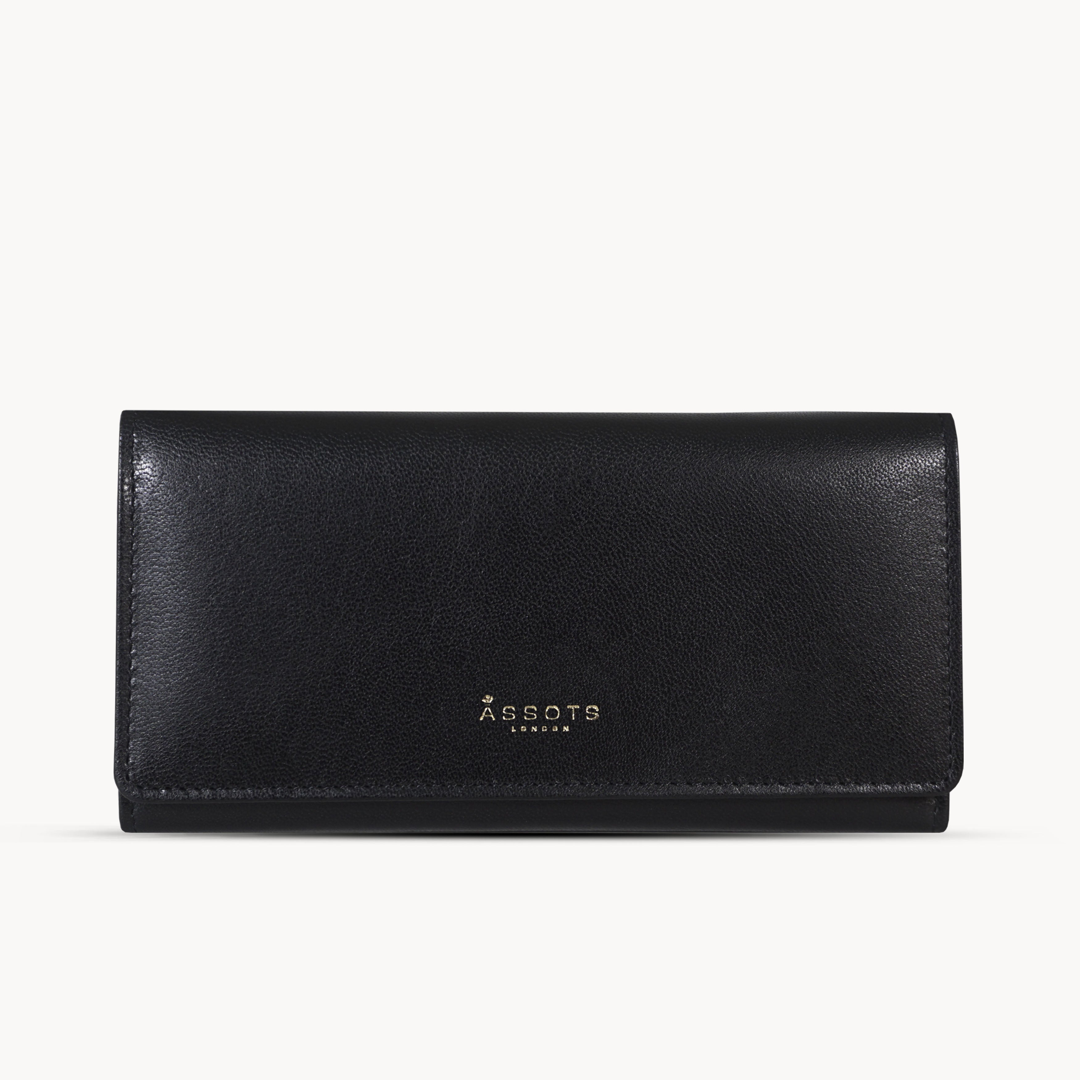 Sold out 'CARMEL' Black Soft Pebble Grain Real Leather Flapover Purse Wallet'CARMEL' Black Soft Pebble Grain Real Leather Flapover Purse Wallet