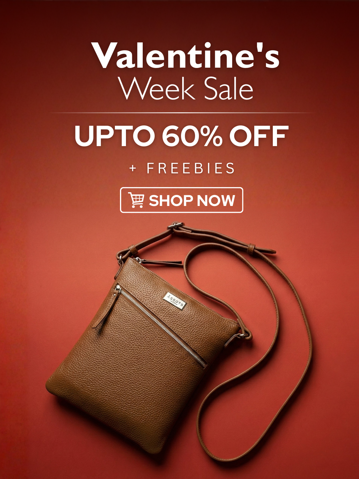 'ROSY' Tan Pebble Grain Soft Real Leather Crossbody Bag