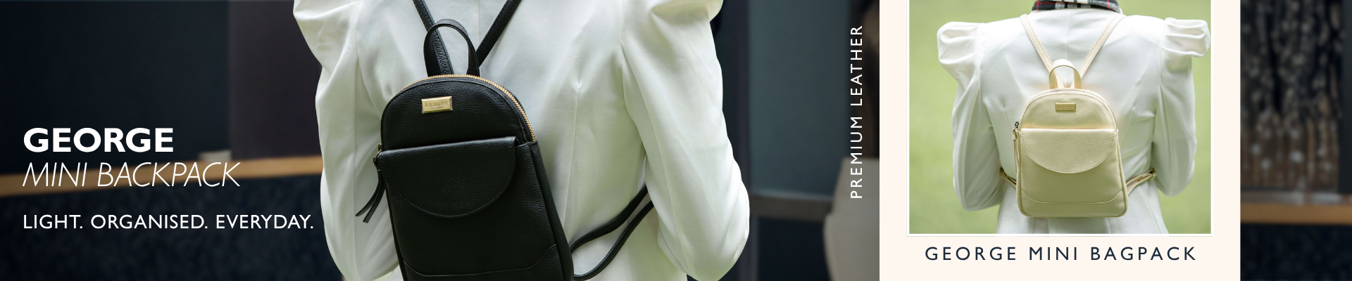 'GEORGE' Cream Mini Pebble Grain Leather Backpack