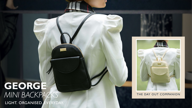 'GEORGE' Black Mini Pebble Grain Leather Backpack