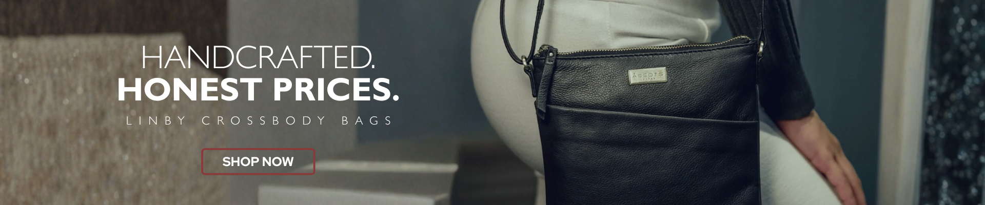 'LINBY' Dark Tan Pebble Grain Leather Crossbody Sling Bag