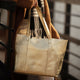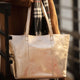 'MAISIE' Yellow Gold Metallic Real Leather Unlined Tote Bag