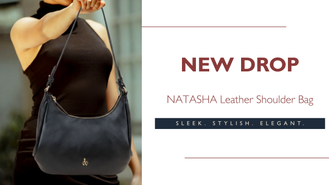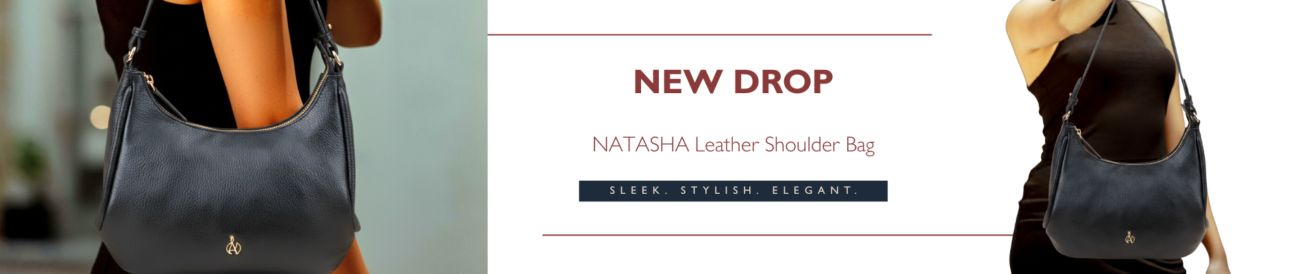 'EVIE' Black Pleated Real Leather Natural Grain Shoulder Bag