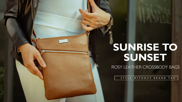 'RUE' Tan Pebble Grain Real Leather Crossbody Bag