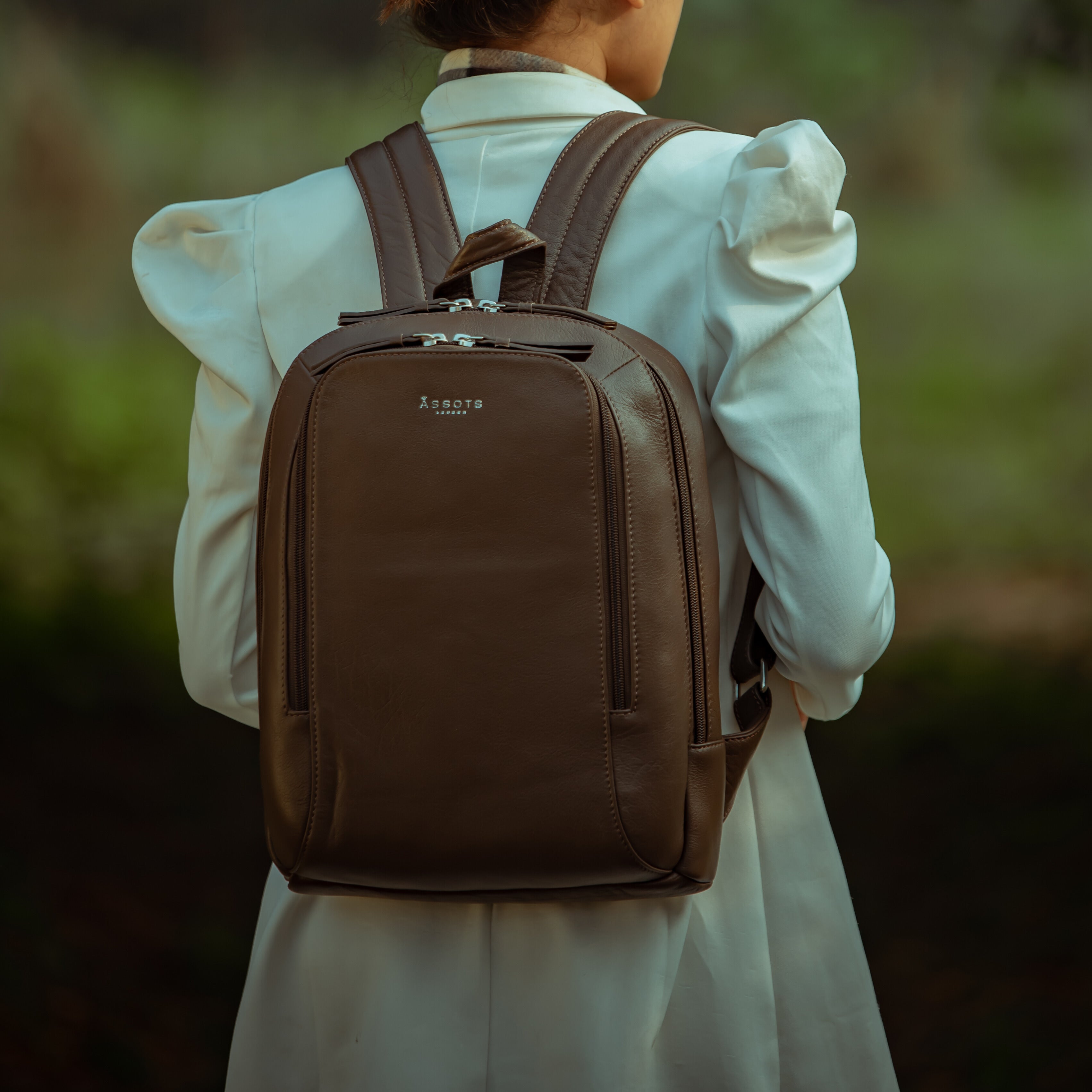 'BAKER' Mokka Brown Full Grain Leather Double Zip Laptop Backpack
