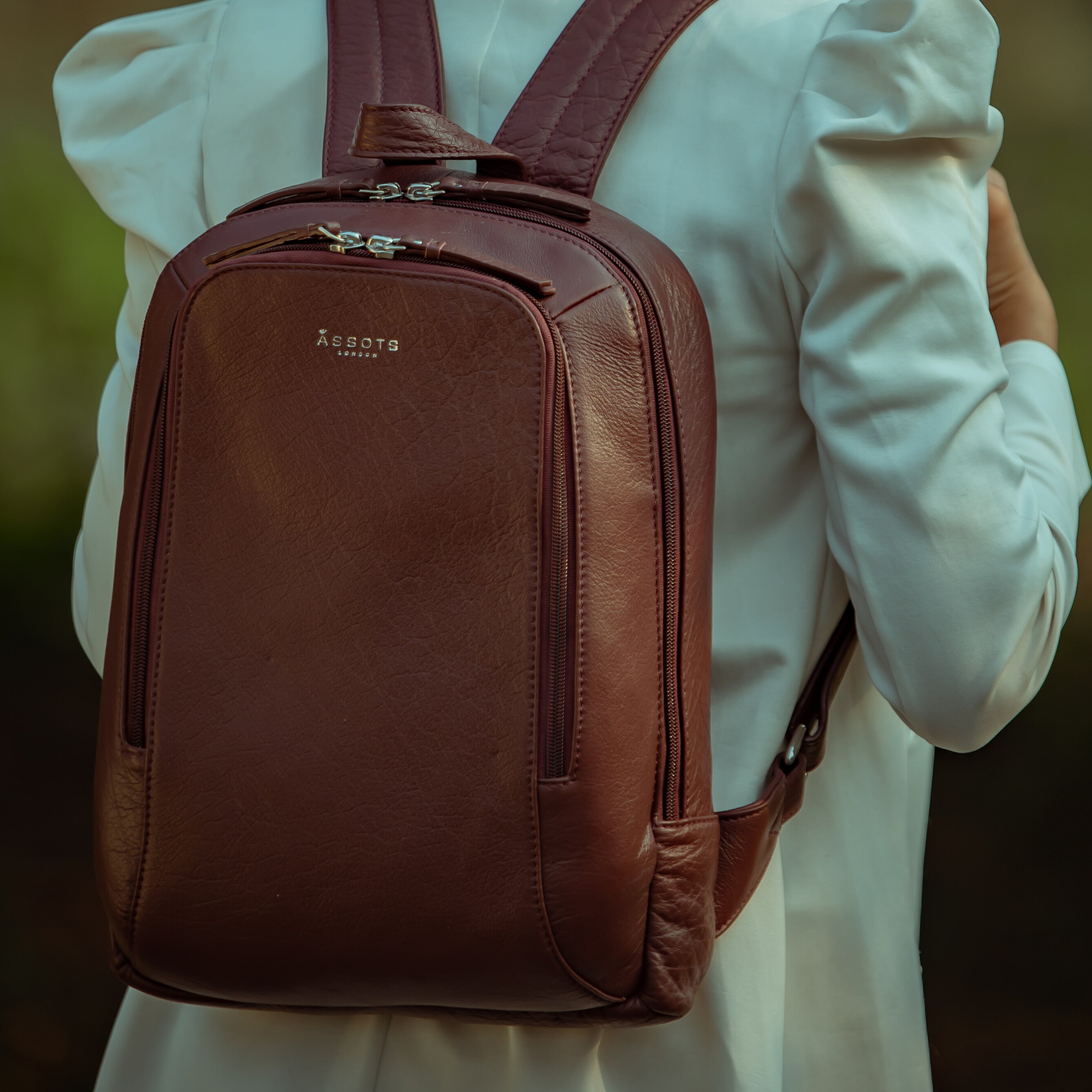'BAKER' Burgundy Full Grain Leather Double Zip Laptop Backpack