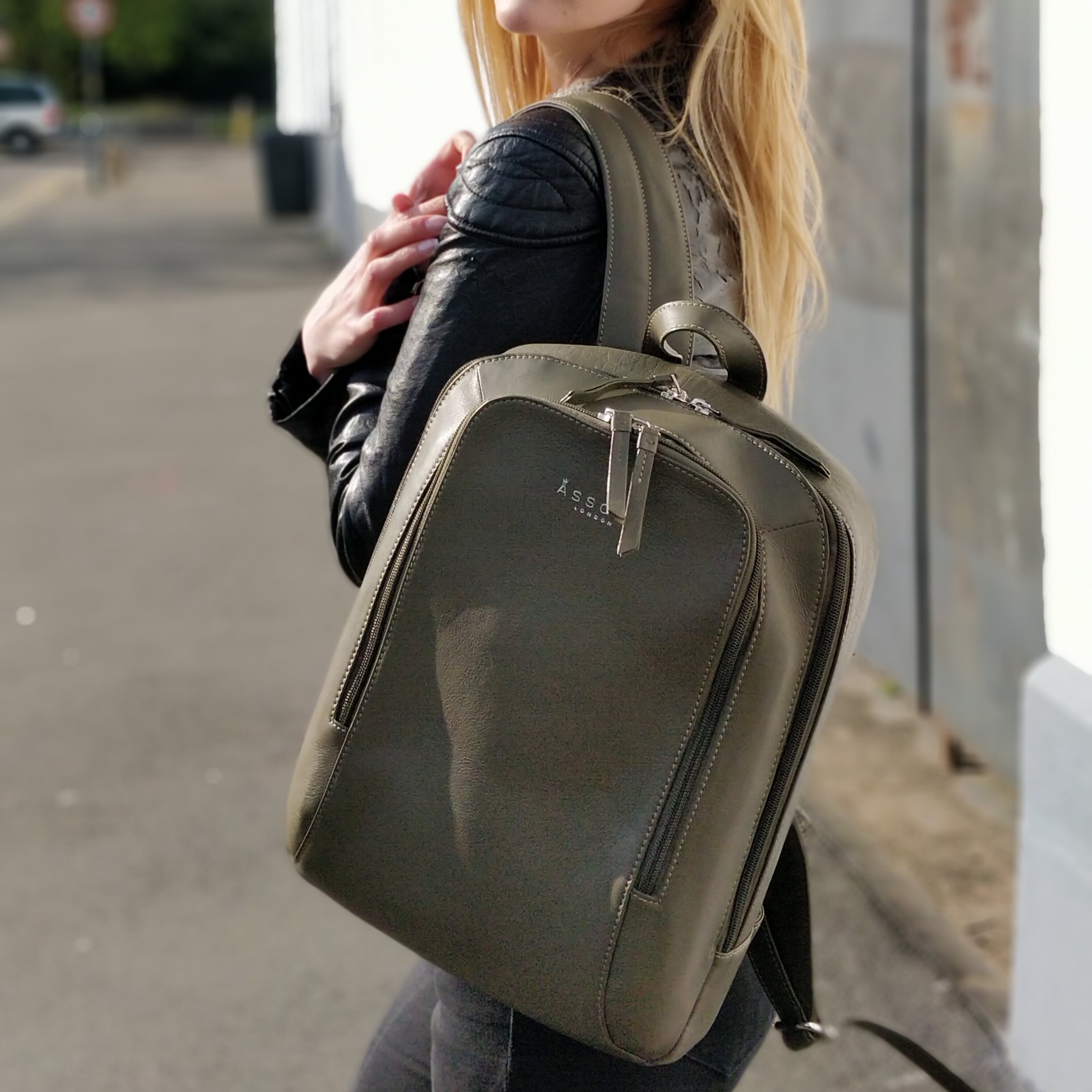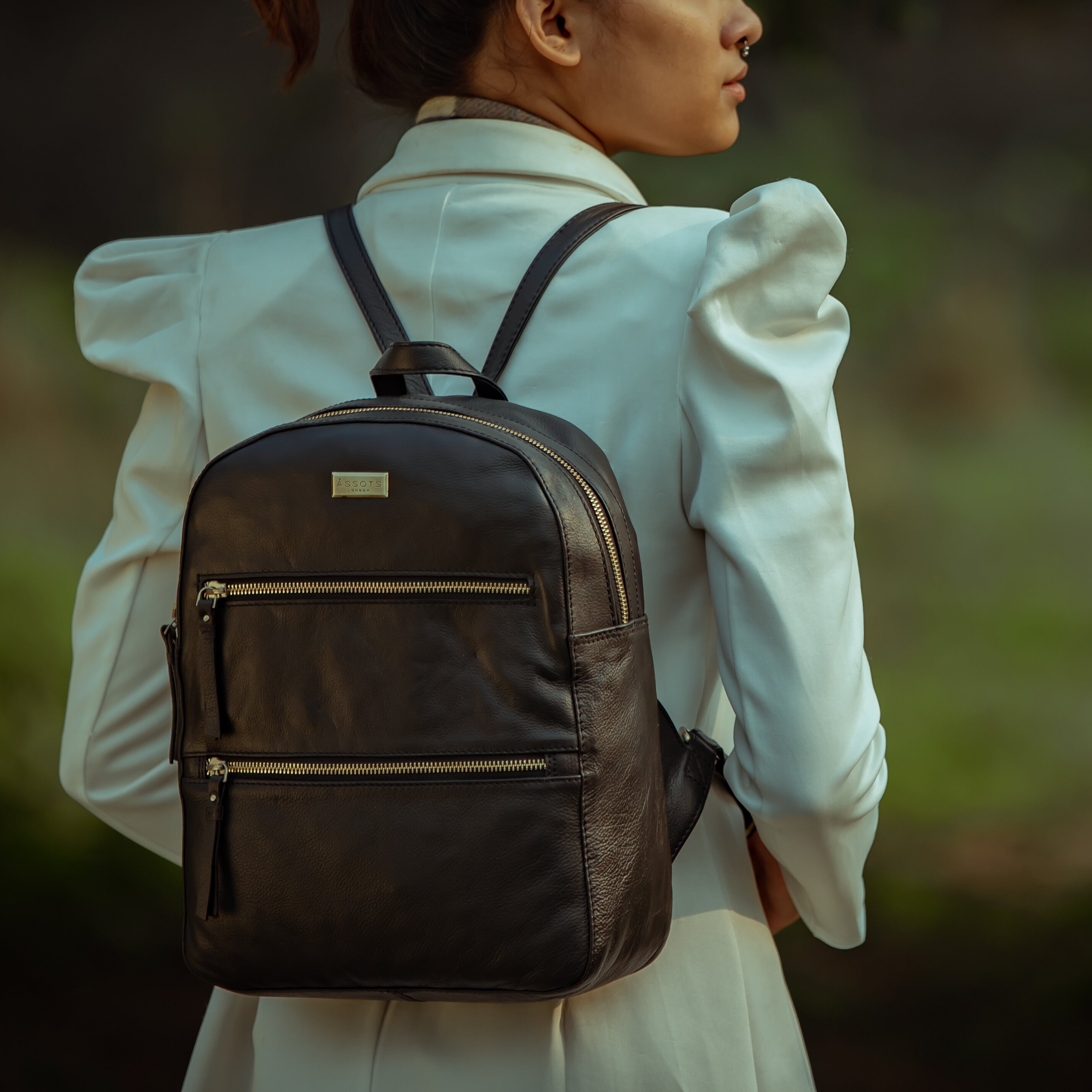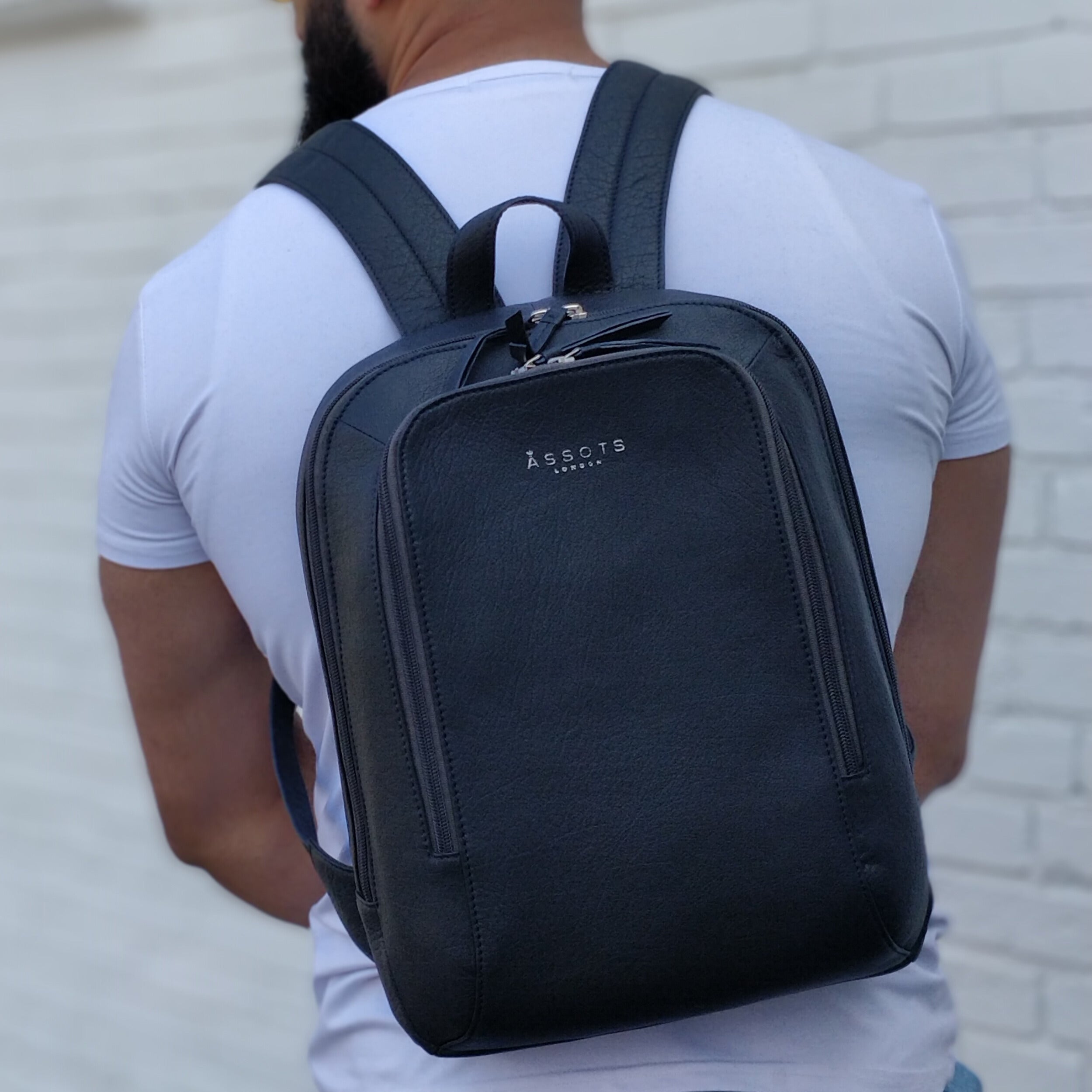 'BAKER' Black Full Grain Leather Double Zip Laptop Backpack