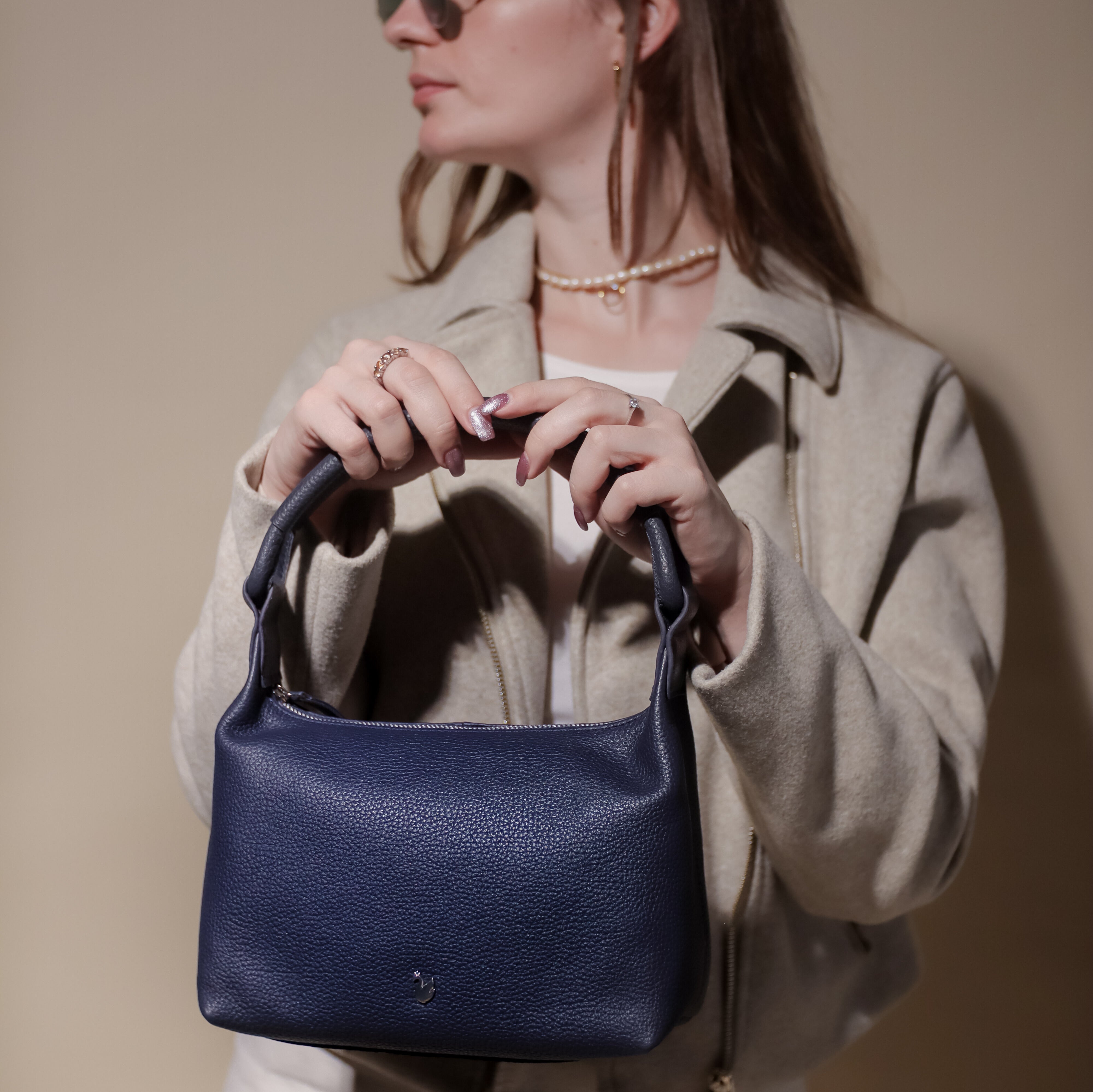 Save 59% 'CITY BAG' Navy Soft Pebble Grain Real Leather Shoulder Bag'CITY BAG' Navy Soft Pebble Grain Real Leather Shoulder Bag