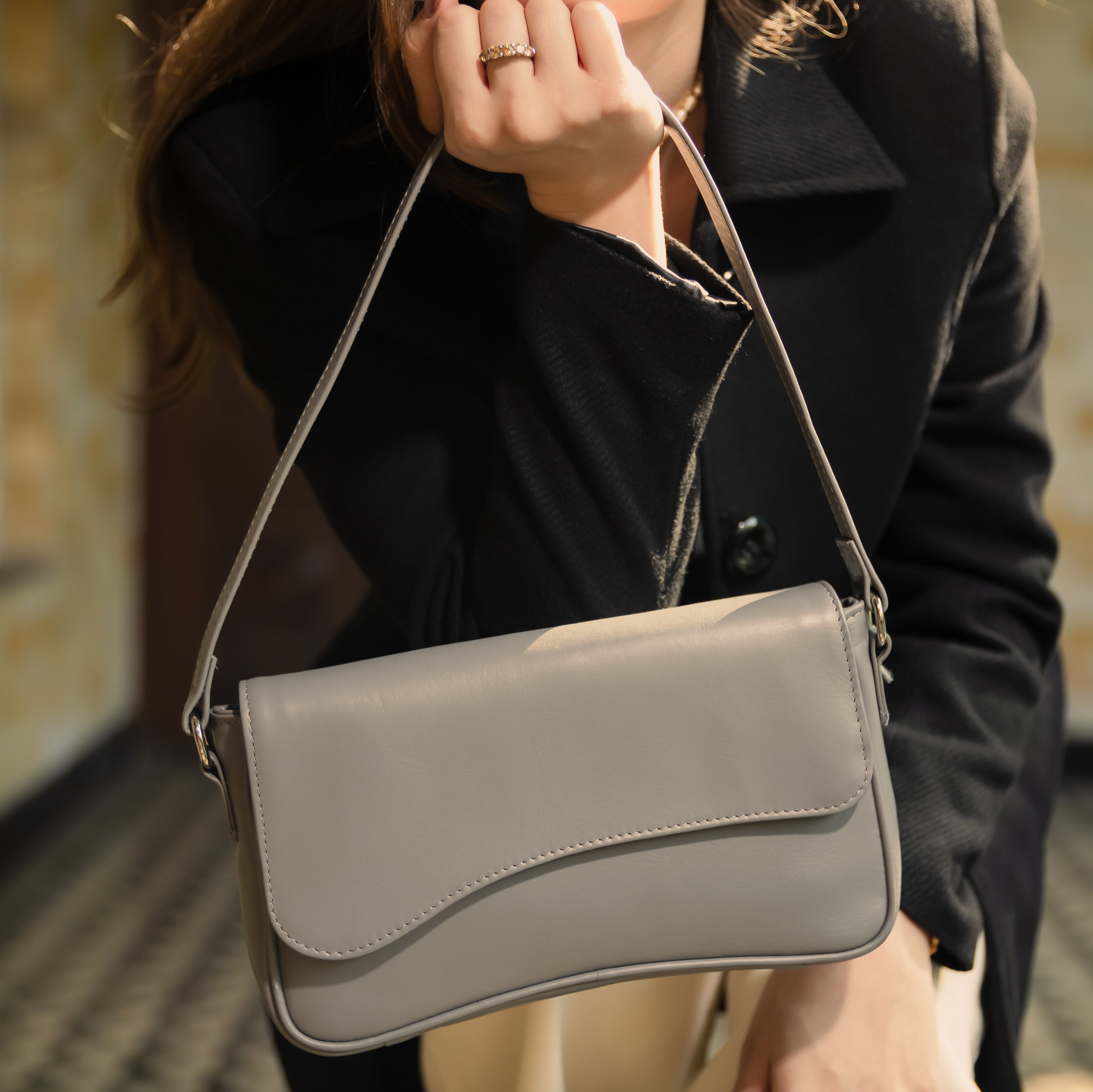 Save 59% 'CITY BAG' Ice Grey Soft Pebble Grain Real Leather Shoulder Bag'CITY BAG' Ice Grey Soft Pebble Grain Real Leather Shoulder Bag