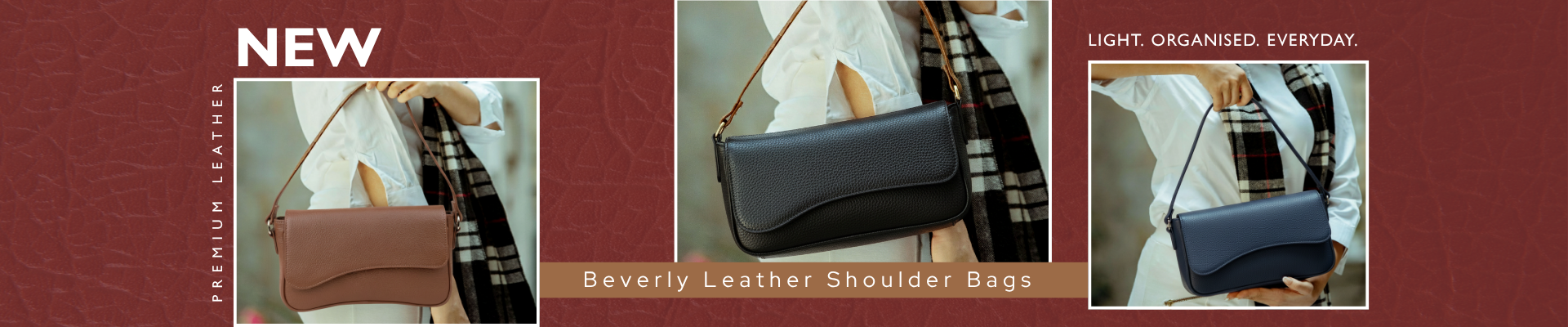 'Beverly' Tan Pebble Grain Real Leather Shoulder Bag
