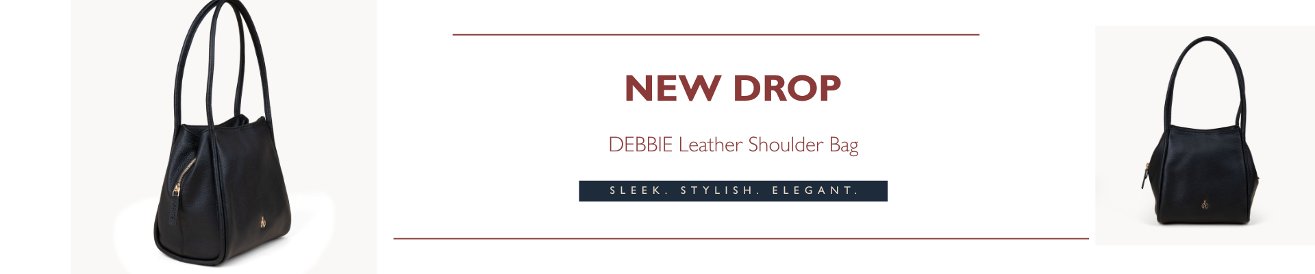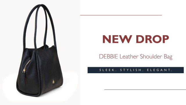 'Debbie' Black Pebble Grain Real Leather Shoulder Bag