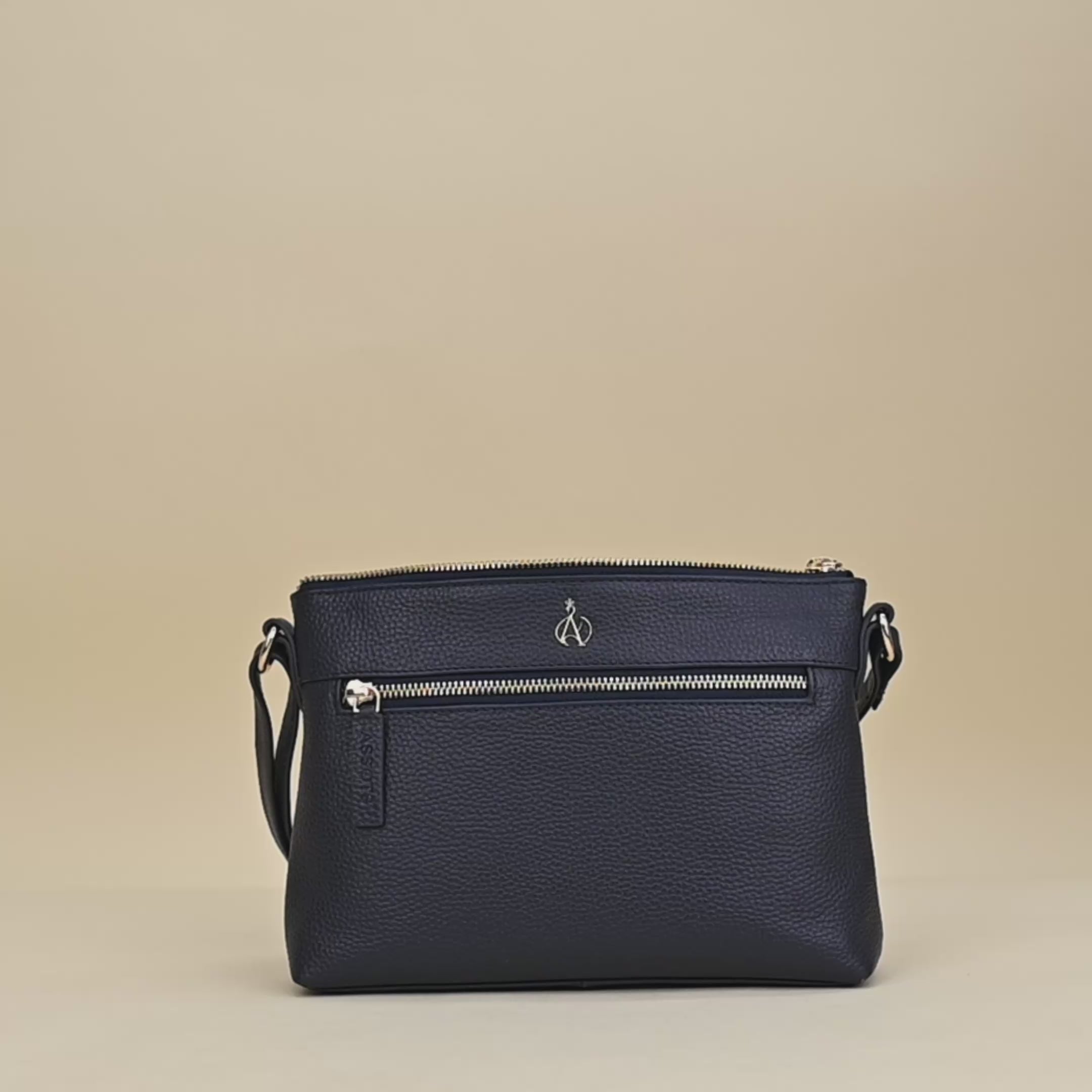 'BECKY' Navy Pebble Grain Real Leather Crossbody Bag