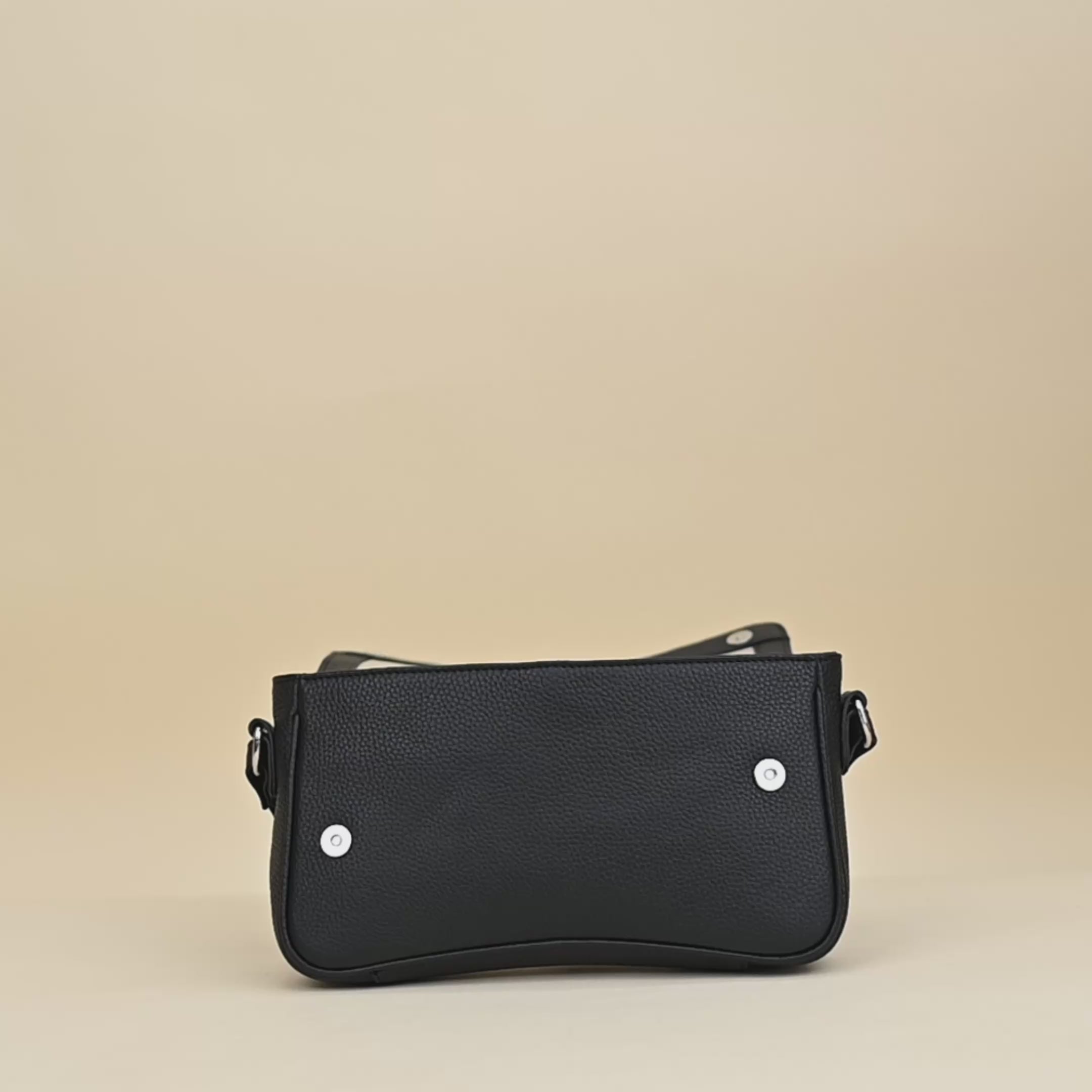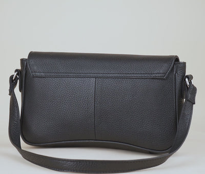 'Beverly' Black Pebble Grain Real Leather Shoulder Bag