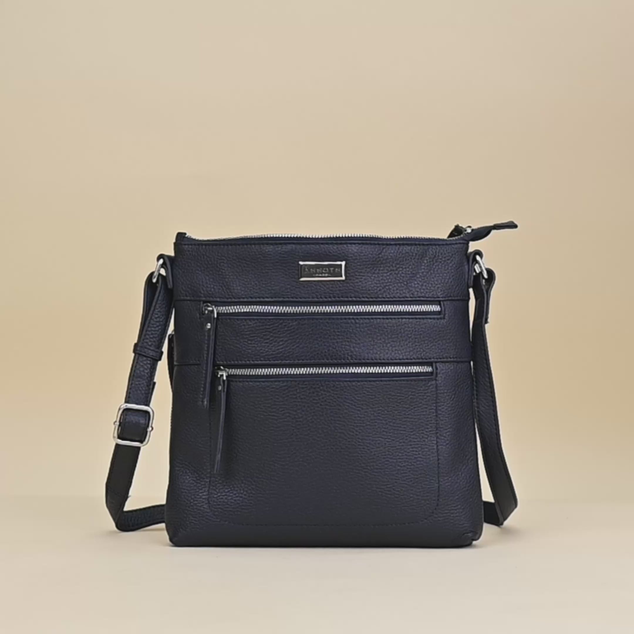 'CORI' Navy Pebble Grain Real Leather Crossbody Bag