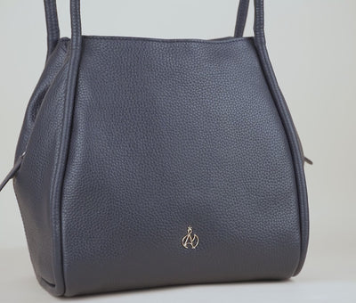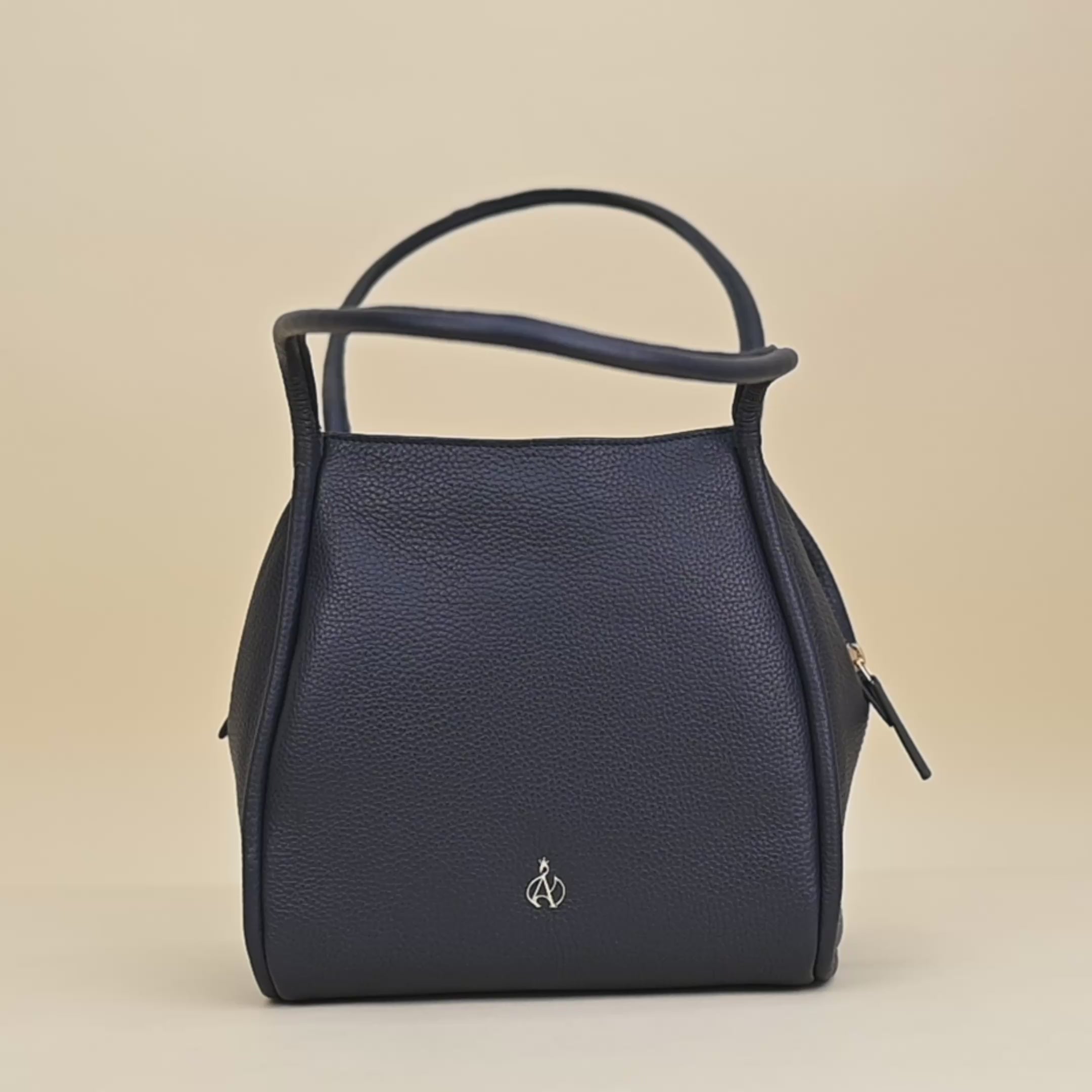 'Debbie' Navy Pebble Grain Real Leather Shoulder Bag