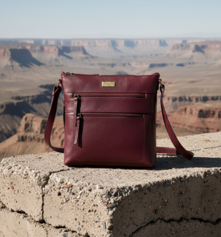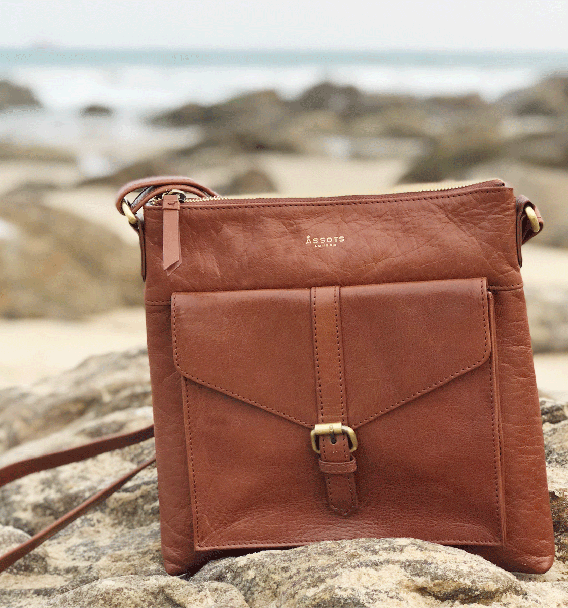 'DEBRA' Camel Pebble Grain Real Leather Crossbody Shoulder Bag