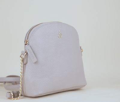 'DOVE' Ice Grey Pebble Grain Real Leather Crossbody Bag