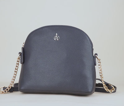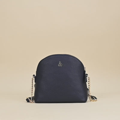 'DOVE' Navy Pebble Grain Real Leather Crossbody Bag