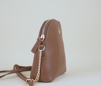 'DOVE' Tan Pebble Grain Real Leather Crossbody Bag