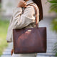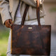 'EVELYN' Tan Walnut Real Distressed Leather Designer Tote Work Bag