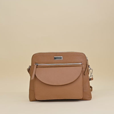 'JEAN' Light Tan Real Soft Pebble Grain Leather Crossbody Bag