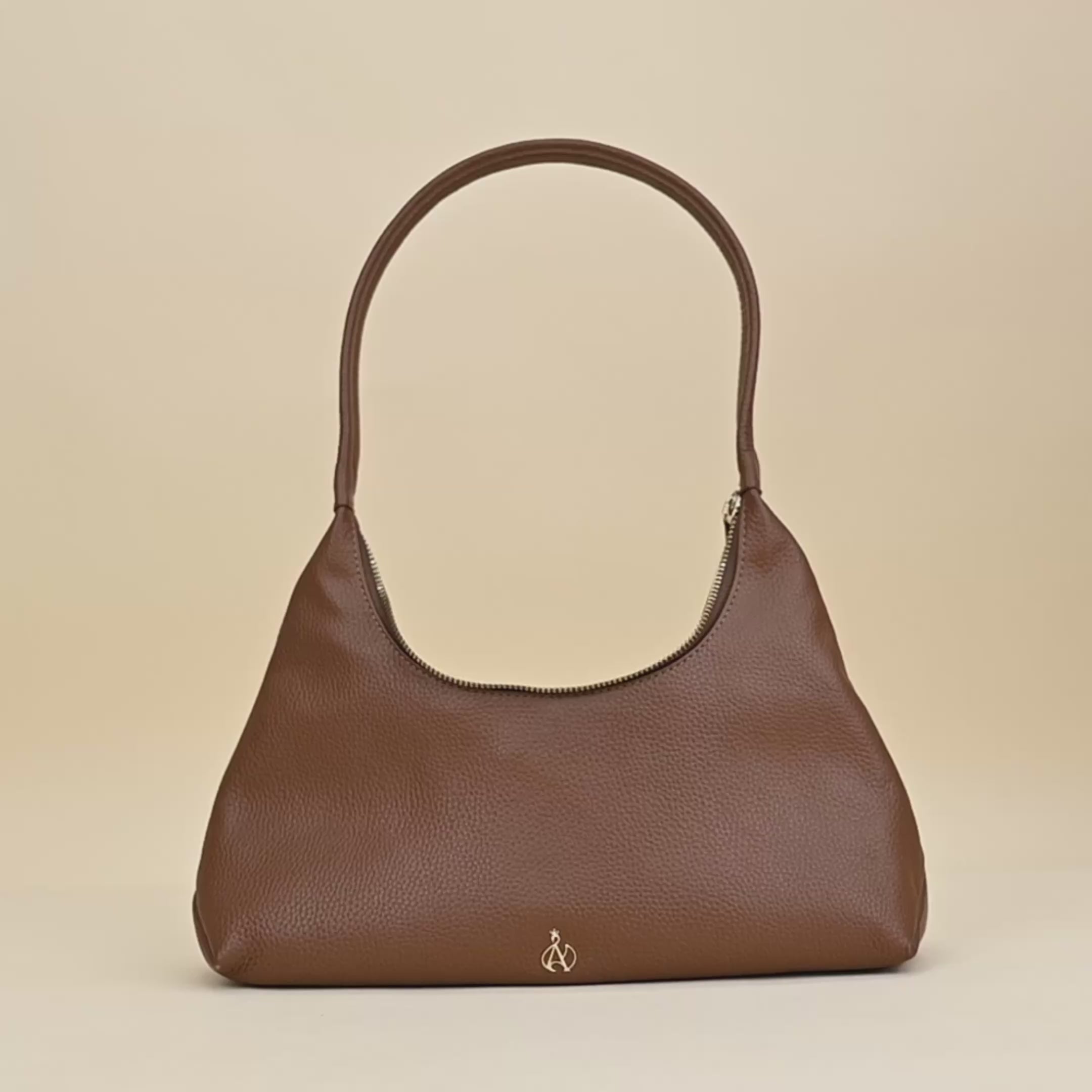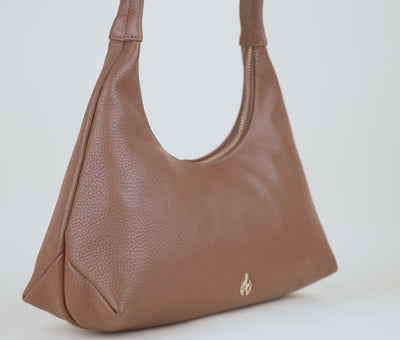 'LARA' Tan Pebble Grain Real Leather Shoulder Bag