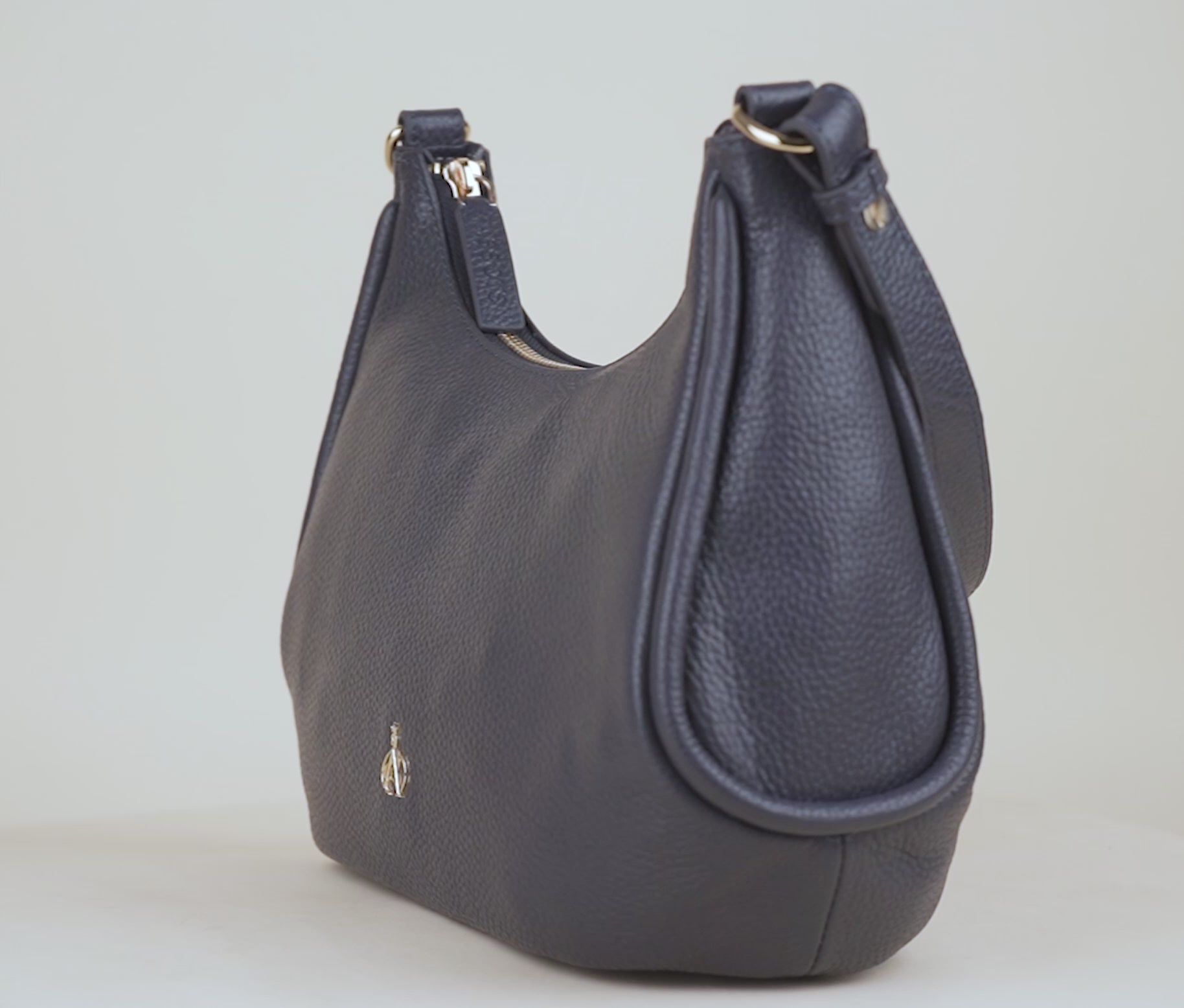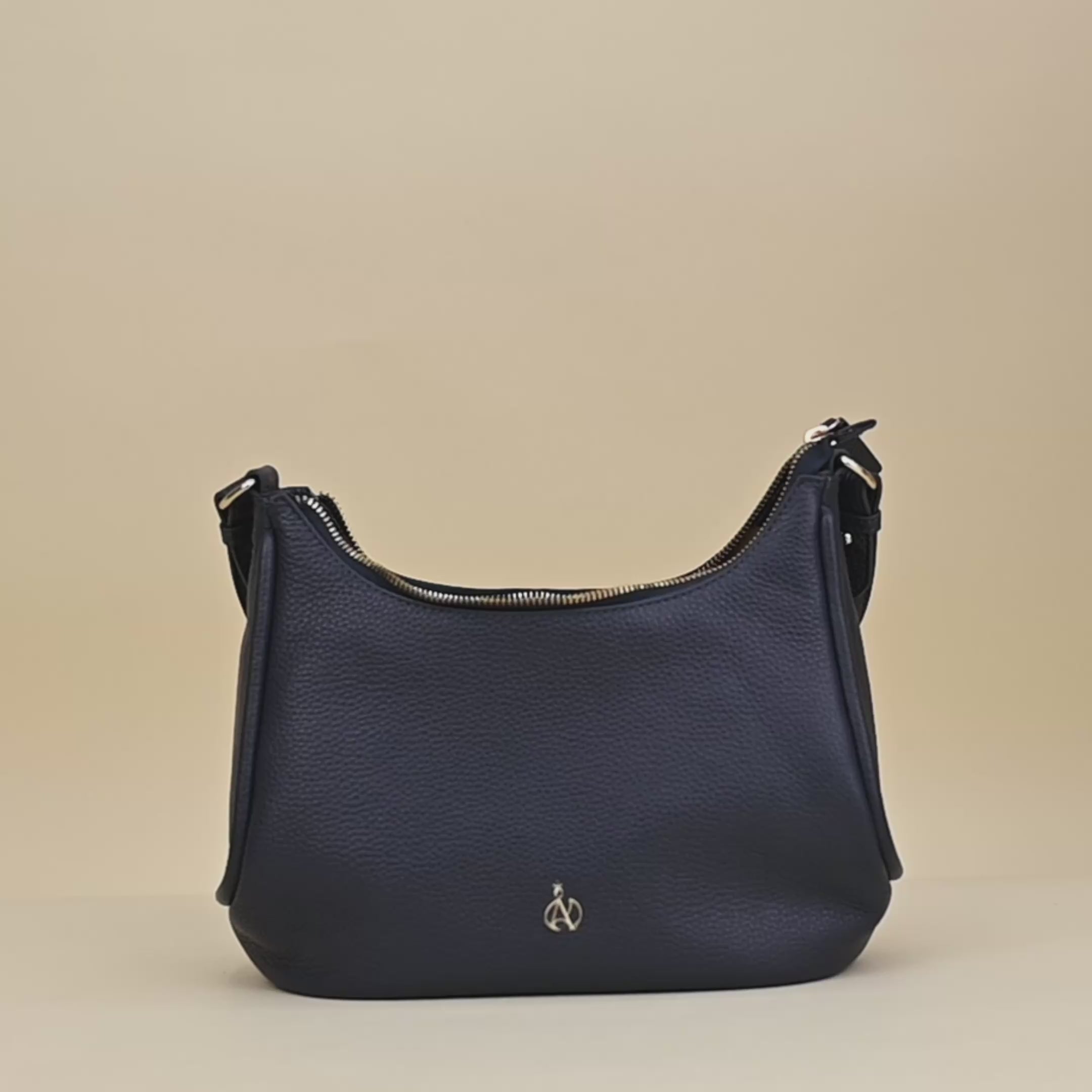'NATASHA' Navy Pebble Grain Real Shoulder Bag