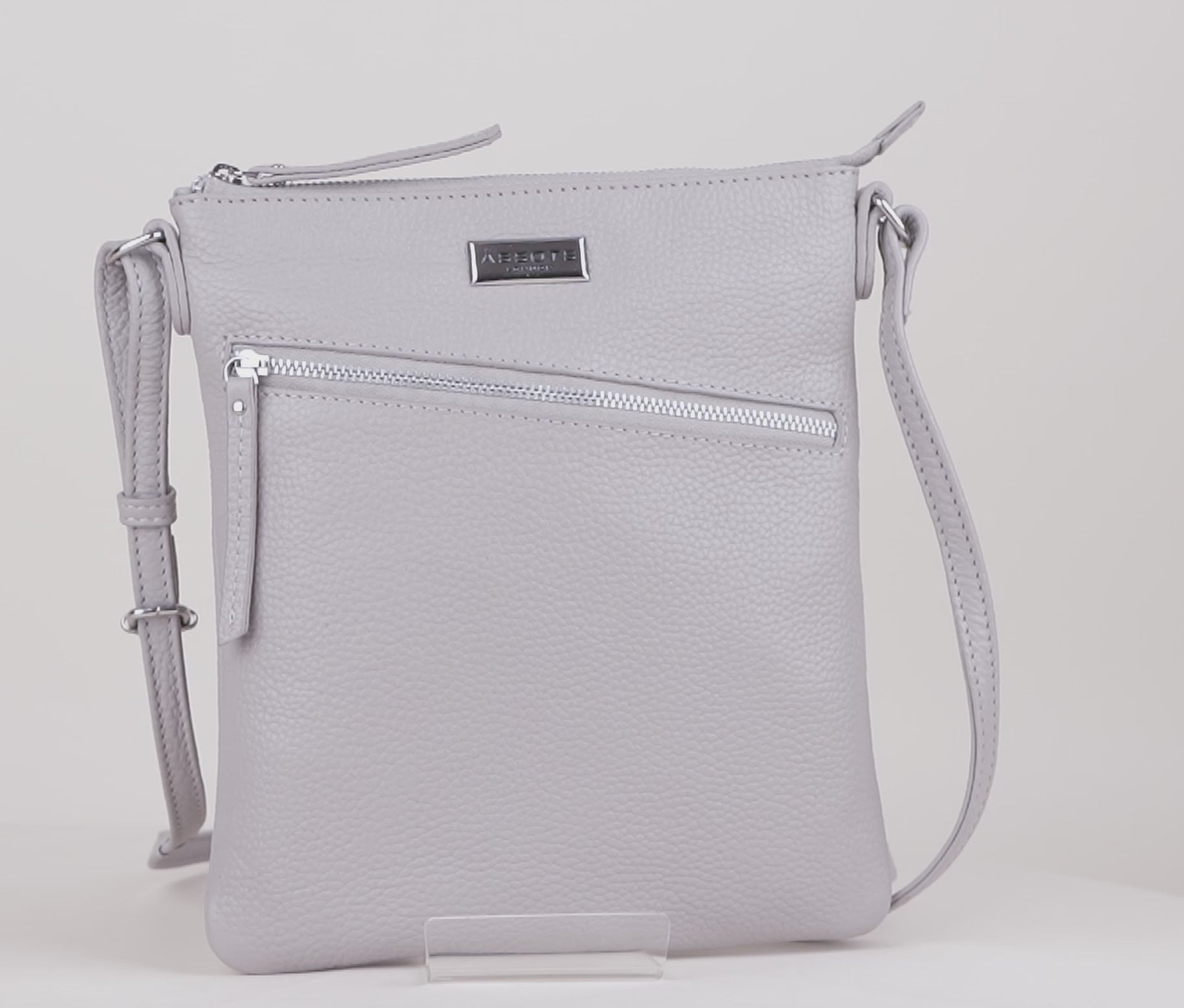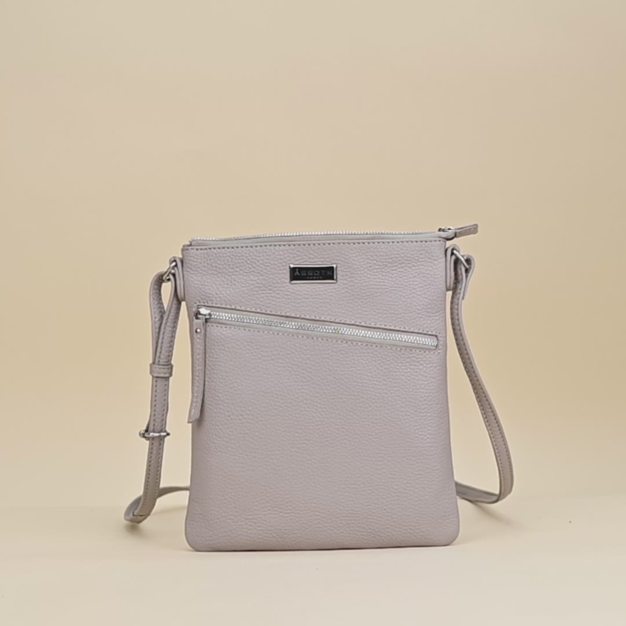 'ROSY' Light Ice Grey Pebble Grain Soft Real Leather Crossbody Bag
