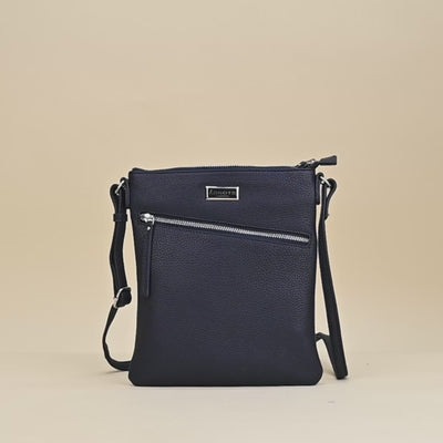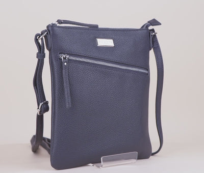 'ROSY' Navy Pebble Grain Soft Real Leather Crossbody Bag