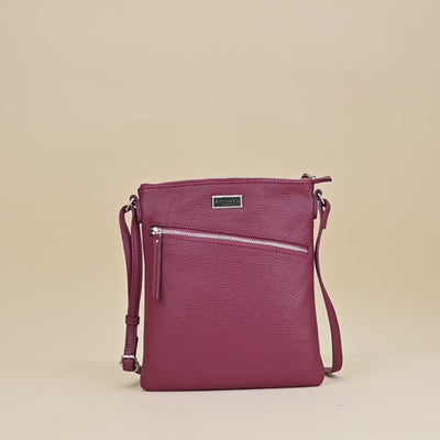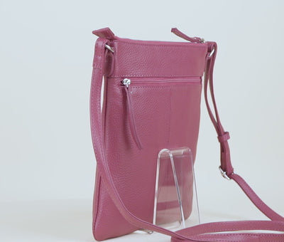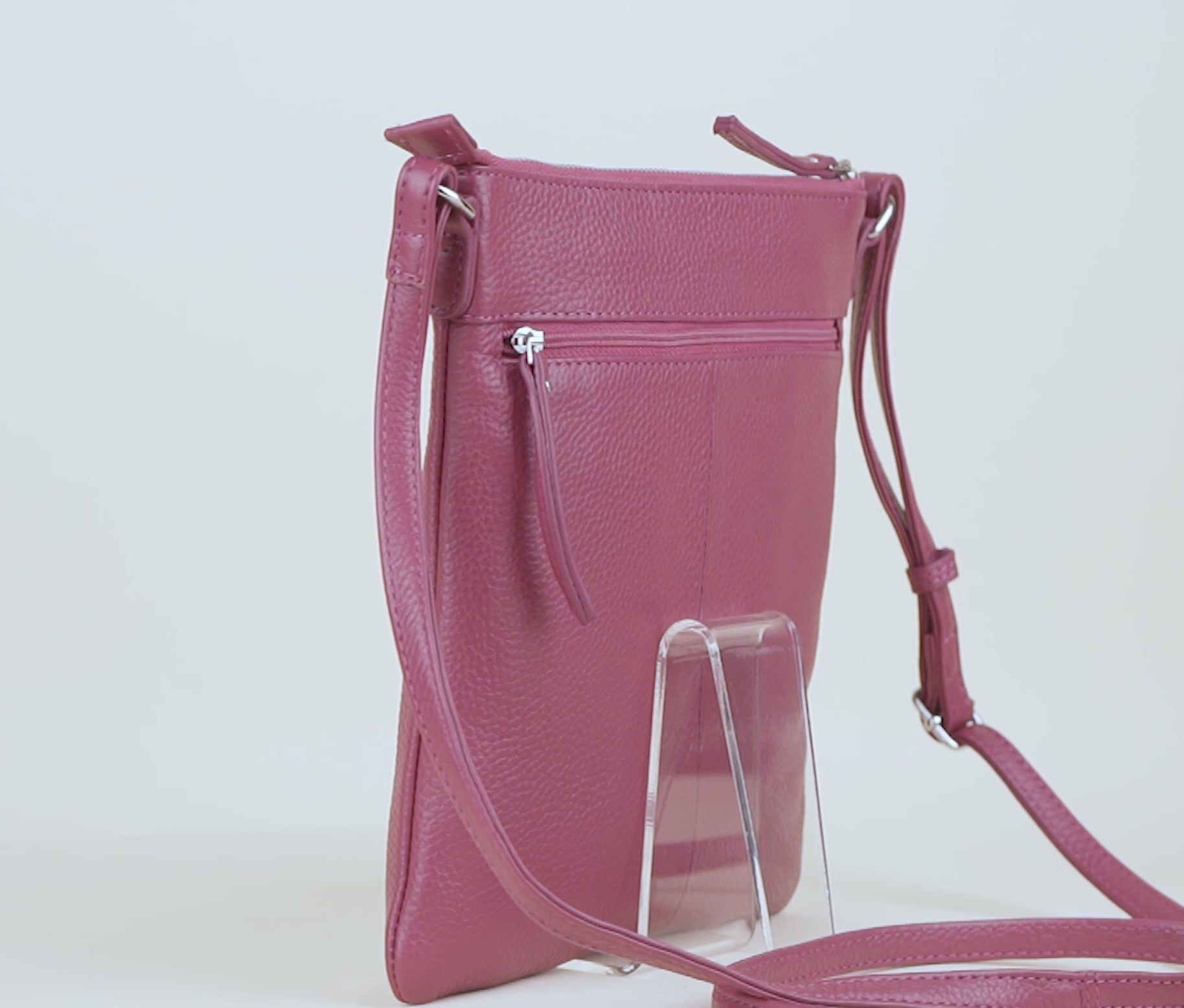 'ROSY' Carmine Pink Pebble Grain Soft Real Leather Crossbody Bag