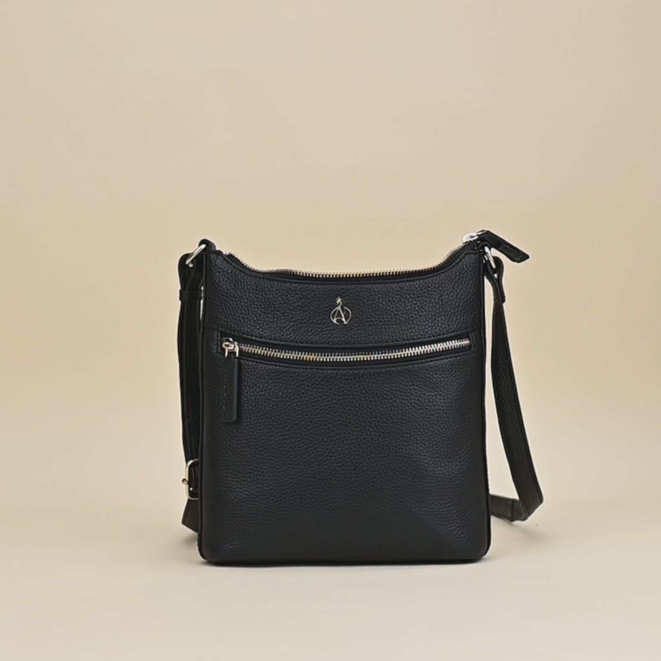 'SALLY' Black Pebble Grain Real Leather Crossbody Bag