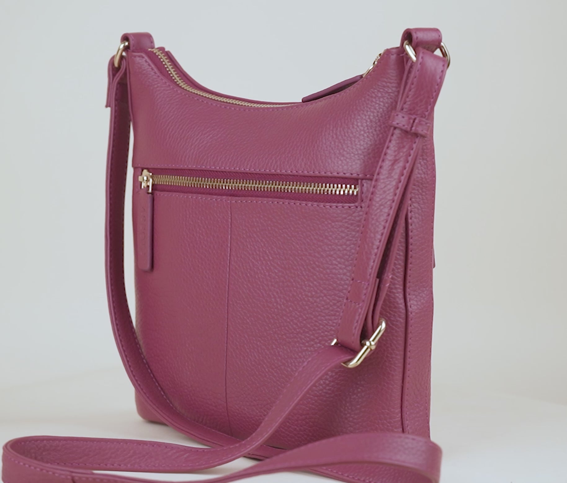 'SALLY' Carmine Pink Pebble Grain Real Leather Crossbody Bag