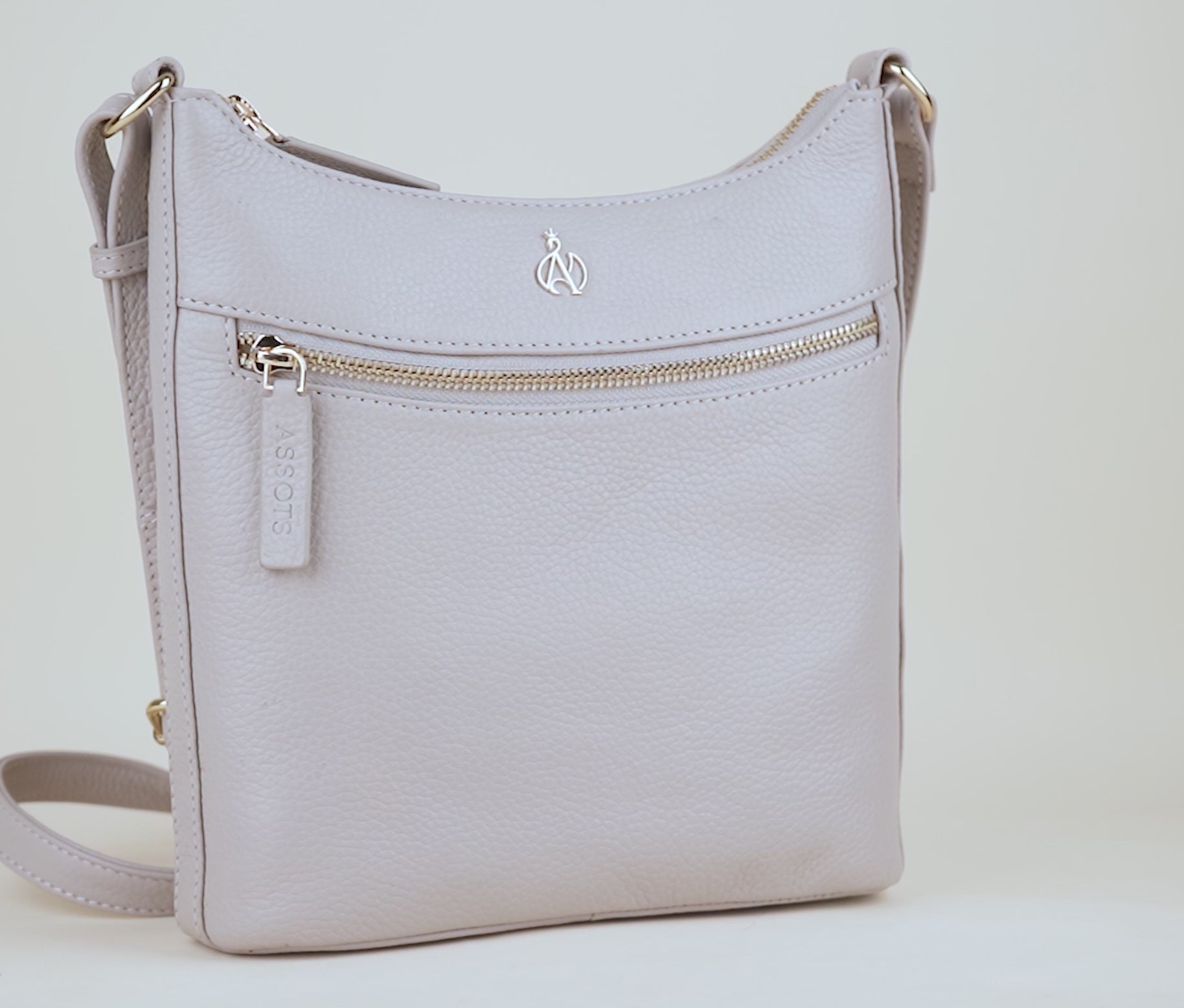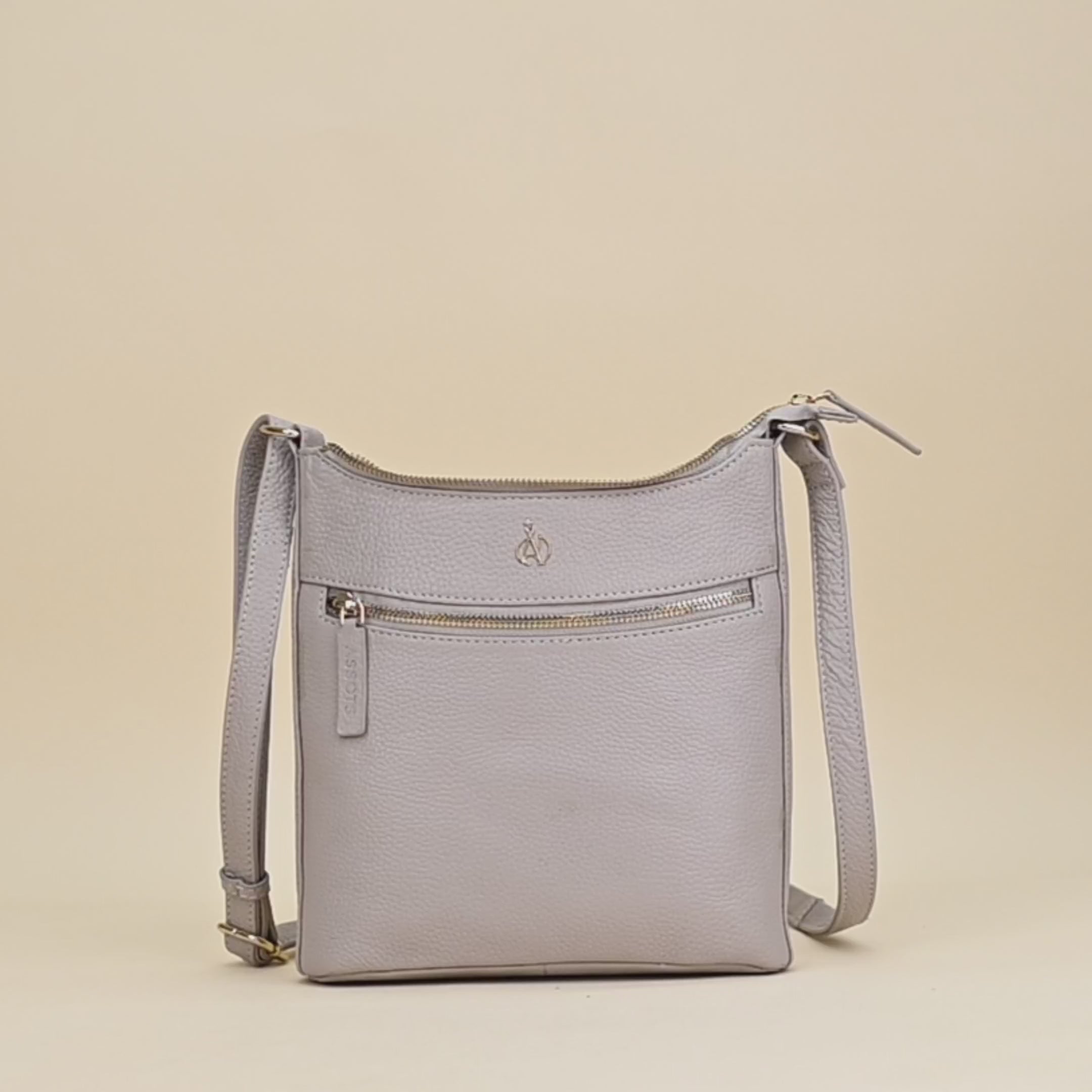 'SALLY' Ice Grey Pebble Grain Real Leather Crossbody Bag