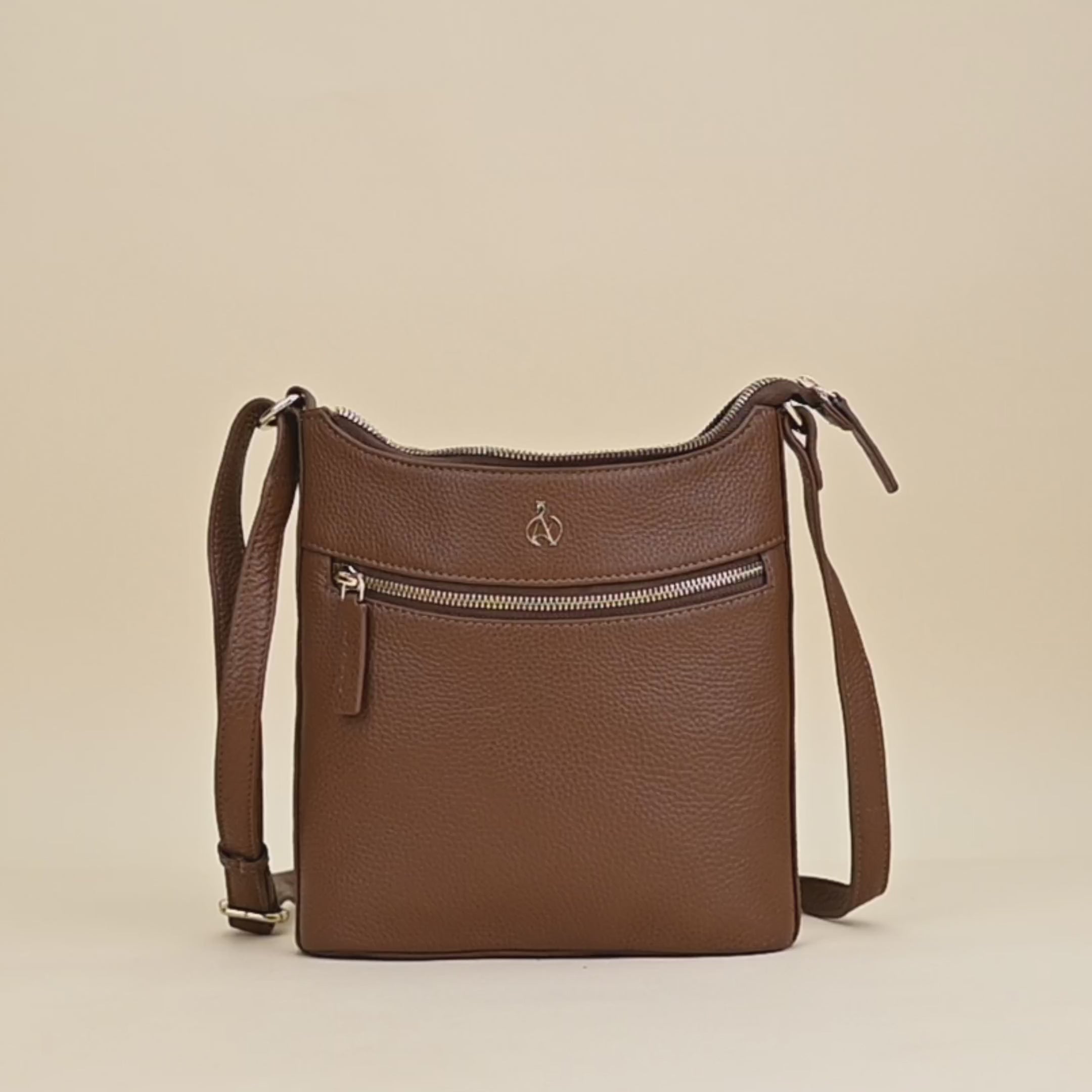 'SALLY' Tan Pebble Grain Real Leather Crossbody Bag