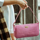 'ZARA' Brown Polished Real Leather Baguette Shoulder Bag